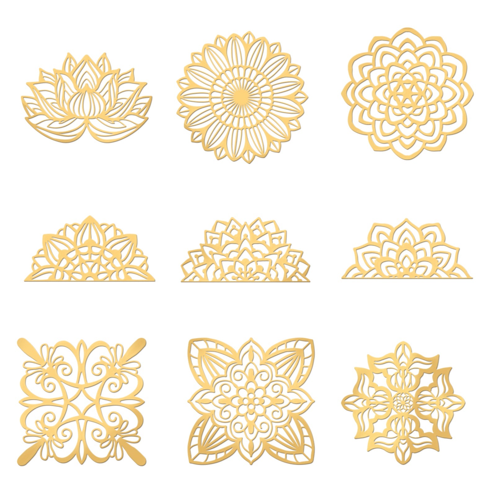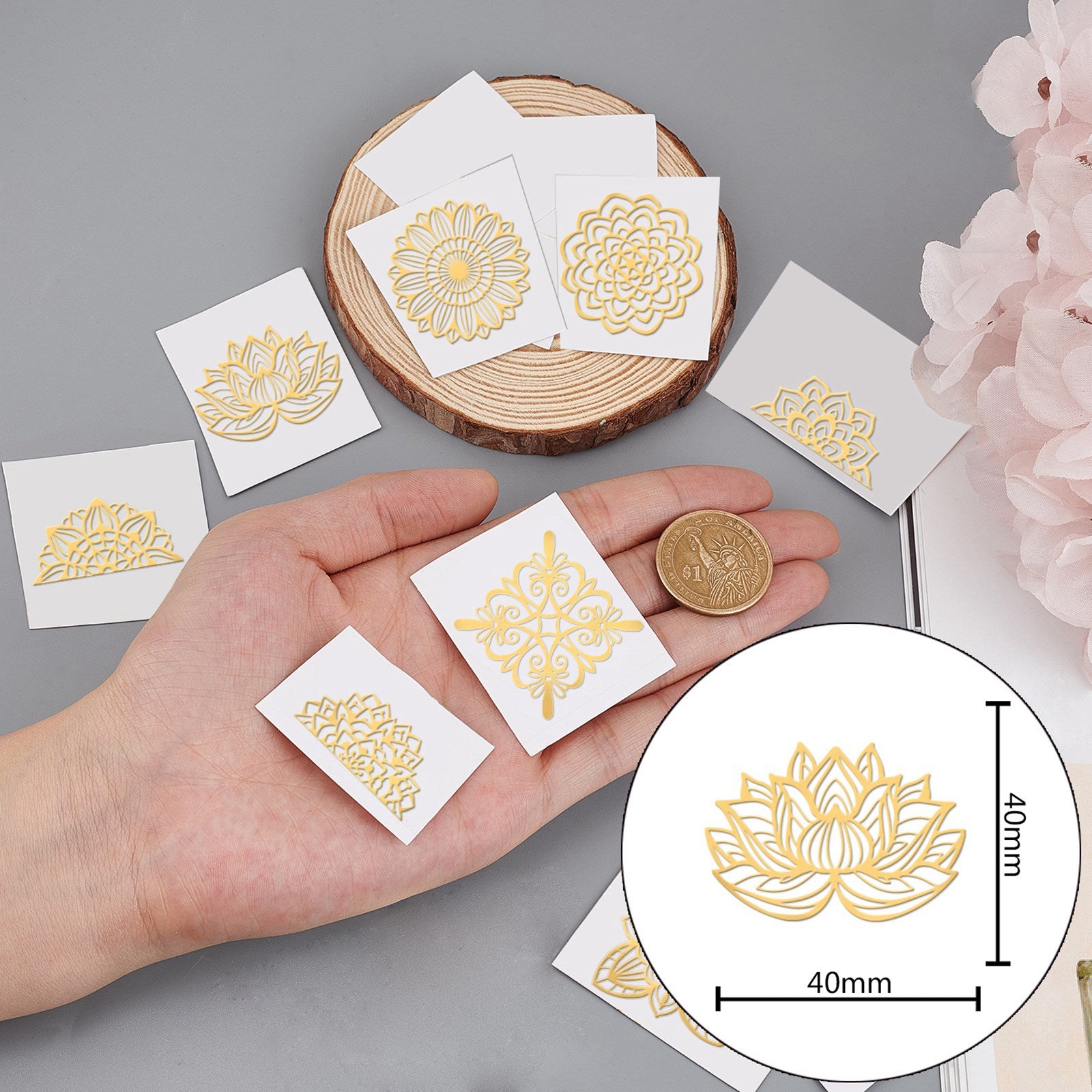 9Pcs 9 Styles Custom Carbon Steel Self-adhesive Picture Stickers, Floral Pattern, 40x40mm, 1pc/style