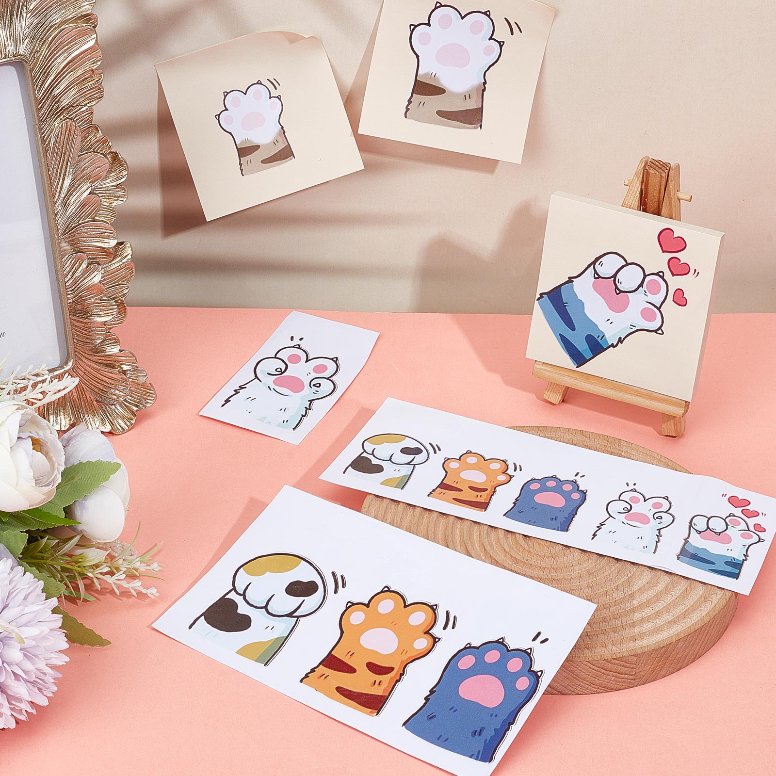 Craspire 2 Sheets 2 Styles PVC Self Adhesive Car Stickers, Waterproof Cat Paw Decals for Vehicle Decor, Paw Print Pattern, Colorful, 220~305x65~90x0.3mm, Paw: 38~78x28~45mm, 1 sheet/style