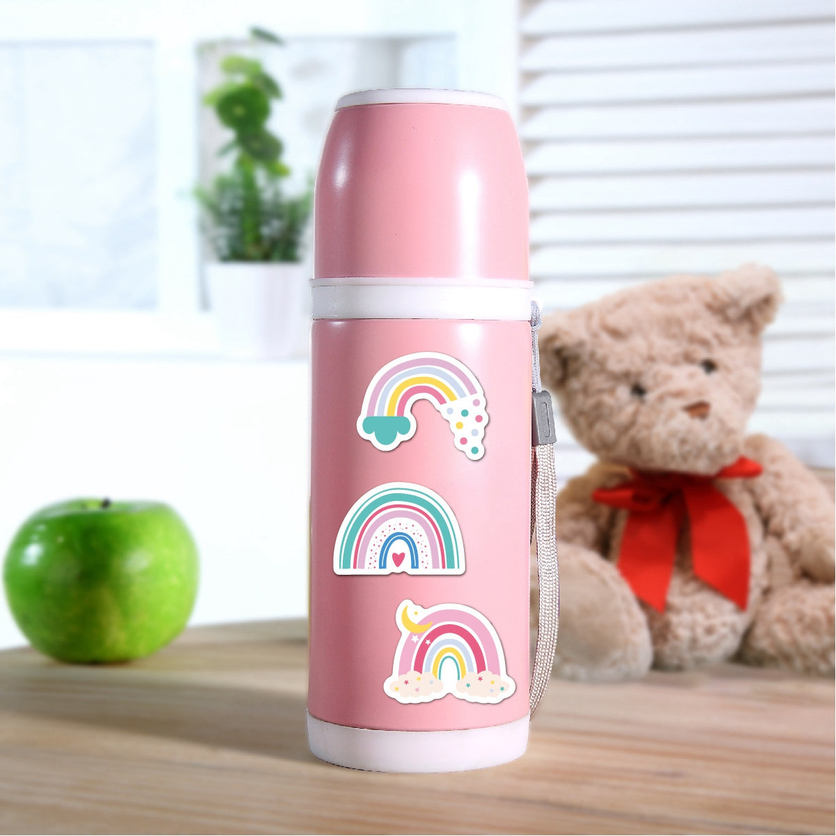 Craspire PVC Adhesive Stickers, for Suitcase, Skateboard, Refrigerator, Helmet, Mobile Phone Shell, Birthday, Rainbow Pattern, 4~6x4~6cm, 50pcs/bag