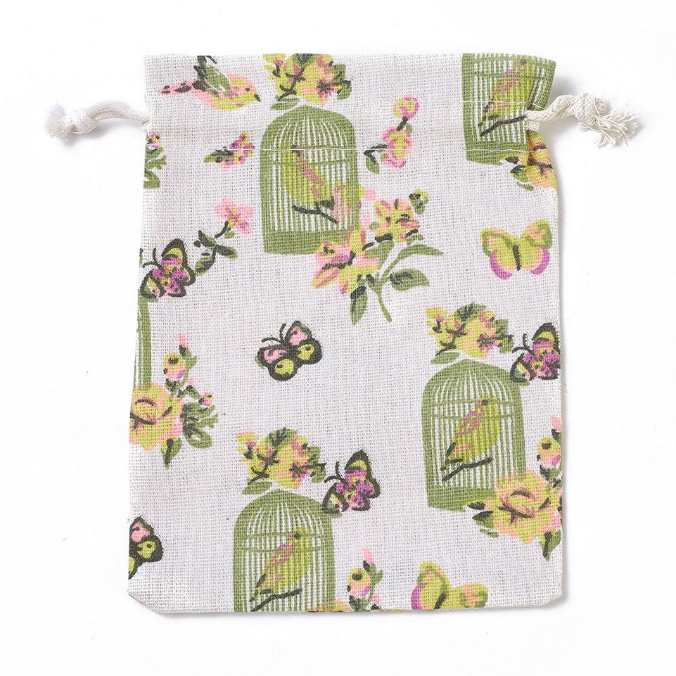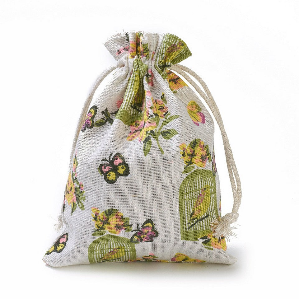 Burlap Packing Pouches, Drawstring Bags, Rectangle with Birdcage Pattern, Colorful