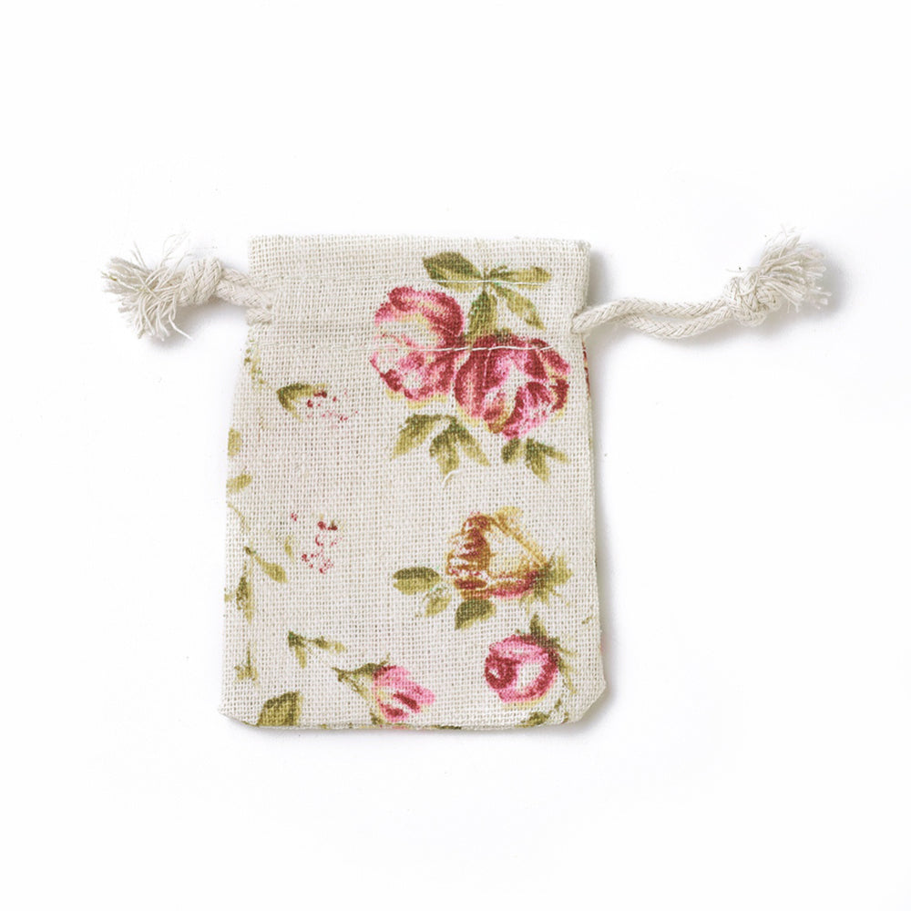 20 pc Burlap Packing Pouches, Drawstring Bags, Rectangle with Rose Pattern, Colorful, 8.7~9x7~7.2cm