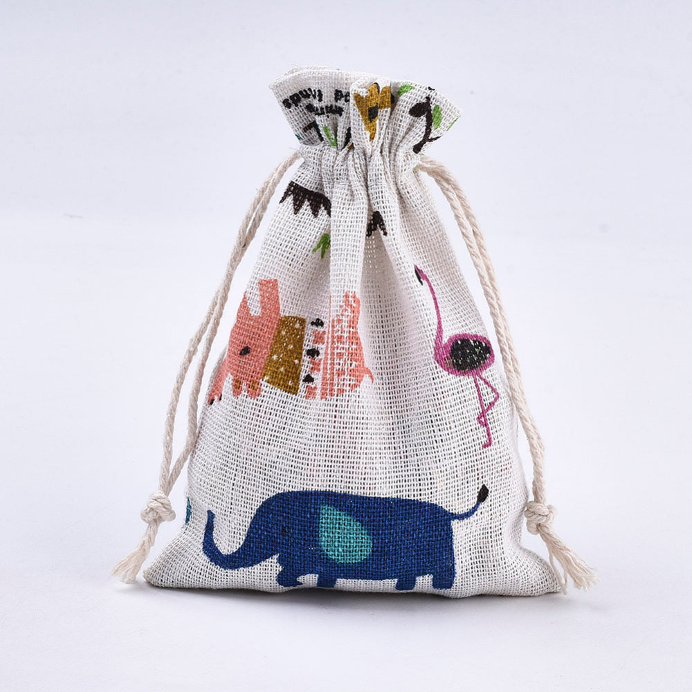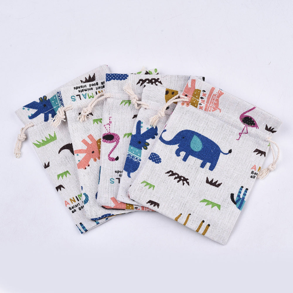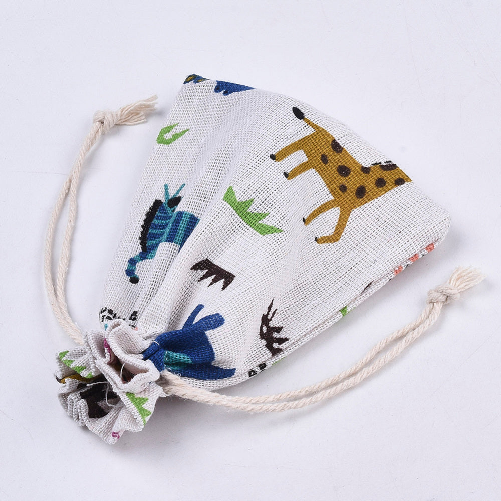 50 pc Polycotton(Polyester Cotton) Packing Pouches Drawstring Bags, with Animal Printed, Colorful, 13.7x10cm