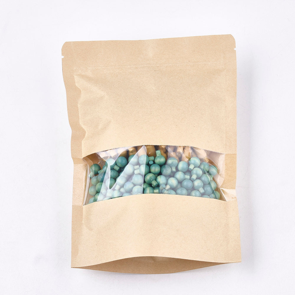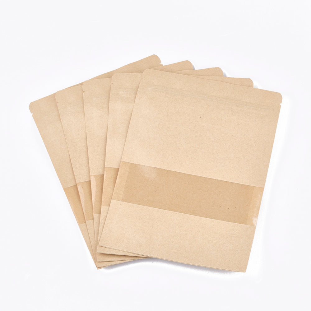 Resealable Kraft Paper Bags, Resealable Bags, Small Kraft Paper Stand up Pouch, with Window, Navajo White