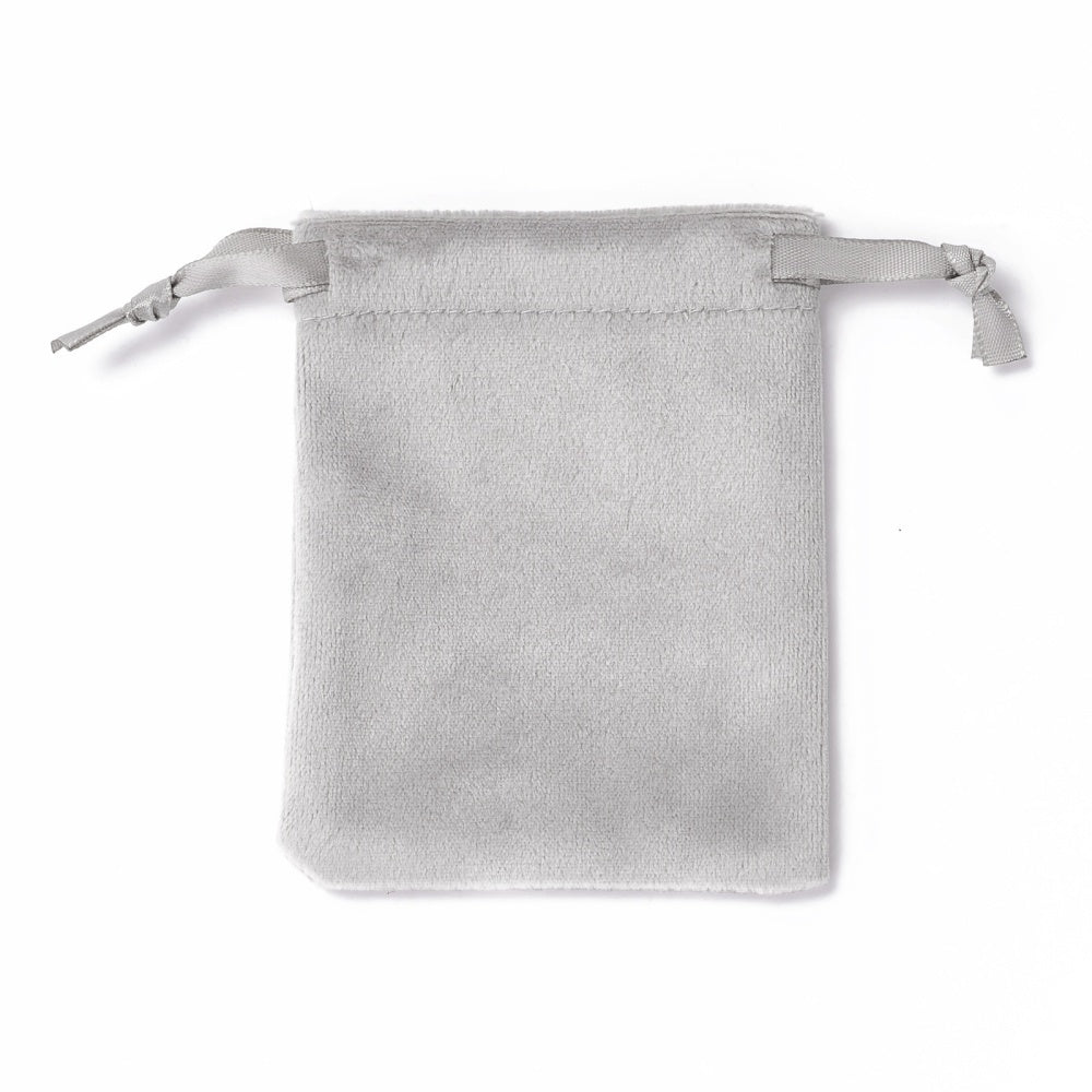 50 pc Velvet Jewelry Drawstring Bags, with Satin Ribbon, Rectangle, Silver, 10x8x0.3cm