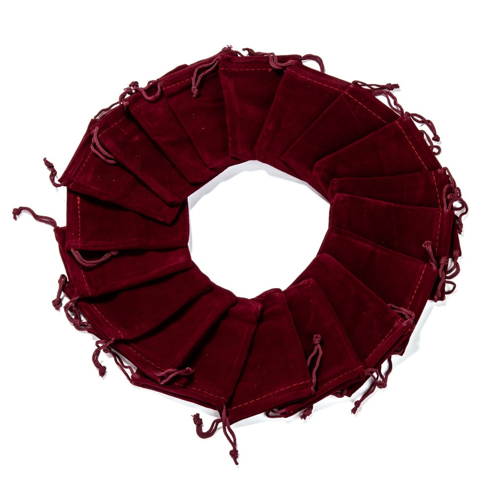 50 pc Rectangle Velvet Pouches, Gift Bags, Dark Red, 9x7cm