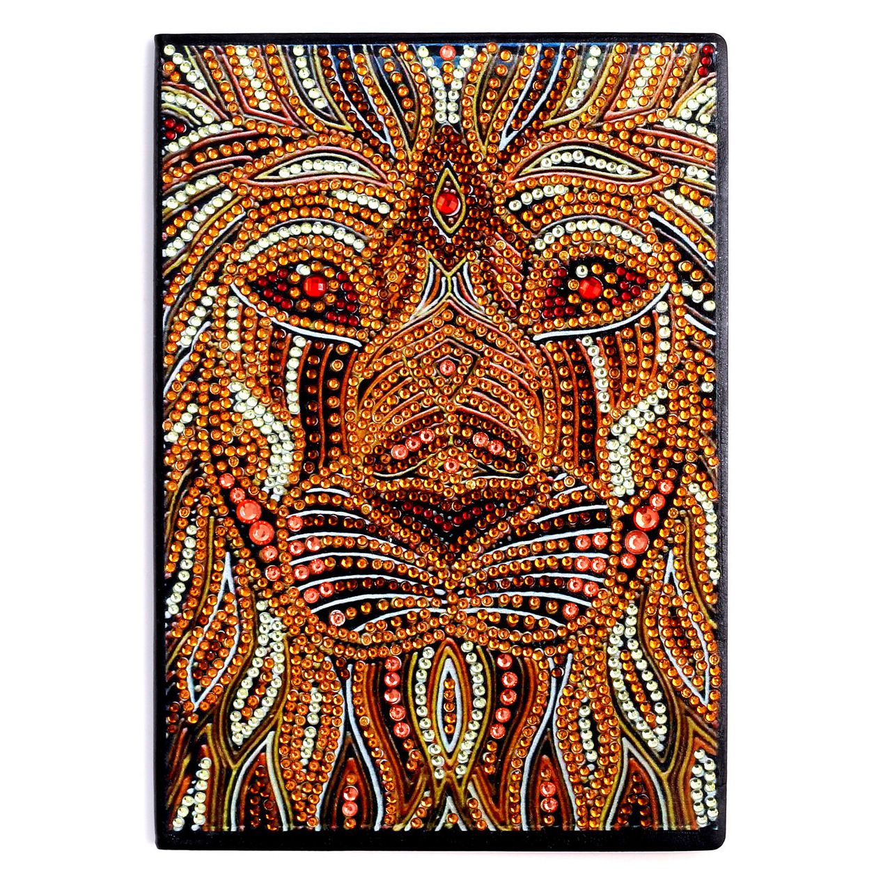 DIY Diamond Painting Notebook Kits, including PU Leather Book, Resin Rhinestones, Diamond Sticky Pen, Tray Plate and Glue Clay, Lion Pattern