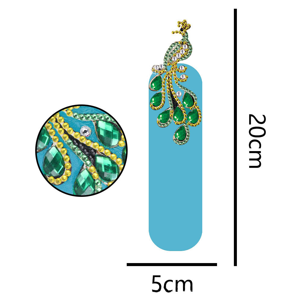 Craspire DIY Diamond Painting Bookmark Kits, including Resin Rhinestones, Diamond Sticky Pen, Tray Plate and Glue Clay, Peacock Pattern, 200x50mm, 2Set/Pack