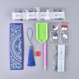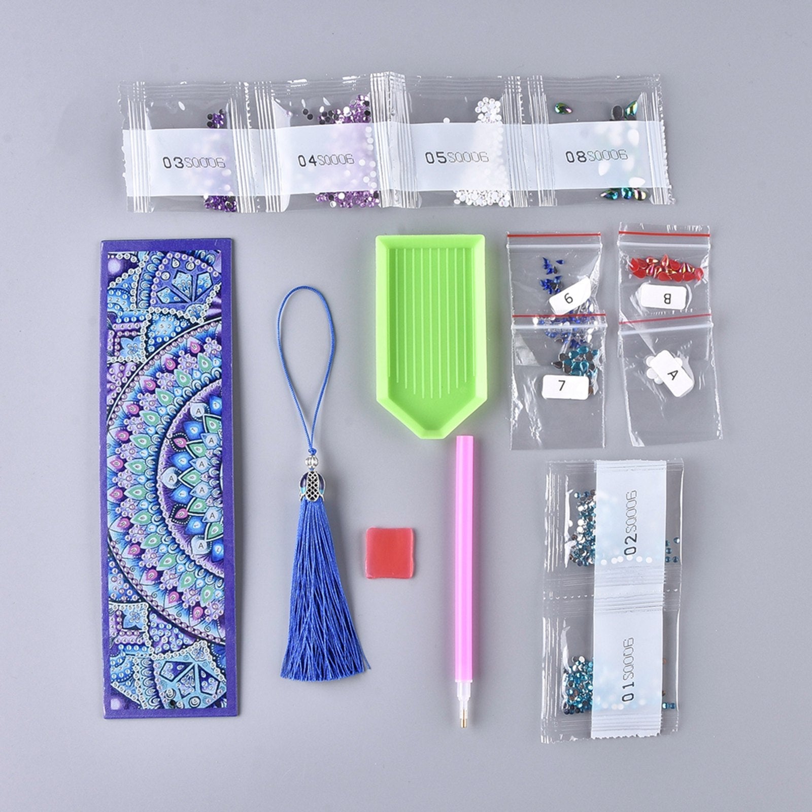 Craspire DIY Diamond Painting Stickers Kits For Bookmark Making, with Diamond Painting Stickers, Resin Rhinestones, Diamond Sticky Pen, Tassel, Tray Plate and Glue Clay, Rectangle with Mandala Pattern, Mixed Color, 20.8x5.8cm, 2Set/Pack