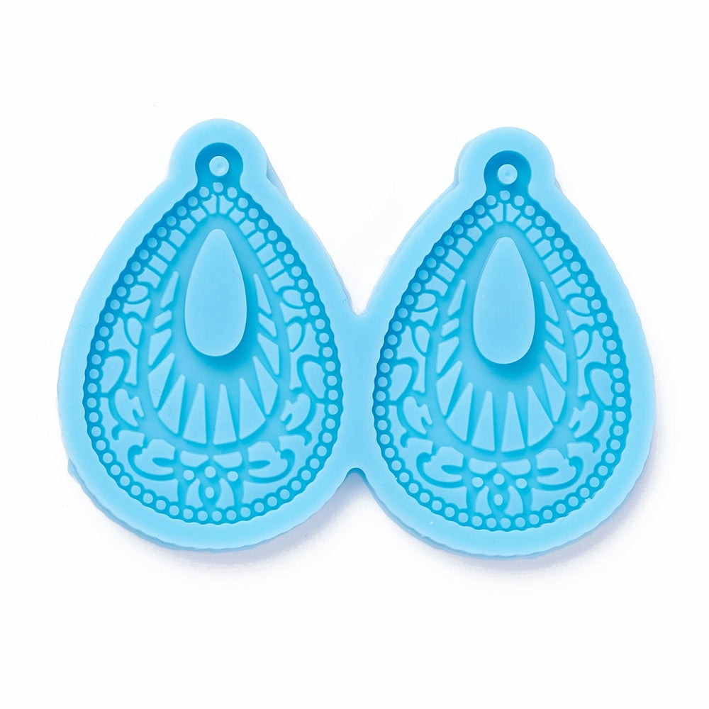 DIY Pendant Silicone Molds, for Earring Making, Resin Casting Molds, For UV Resin, Epoxy Resin Jewelry Making, Teardrop with Flower, Sky Blue