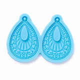DIY Pendant Silicone Molds, for Earring Making, Resin Casting Molds, For UV Resin, Epoxy Resin Jewelry Making, Teardrop with Flower, Sky Blue, 47x64x5mm, Hole: 2mm, Inner Diameter: 40x28mm