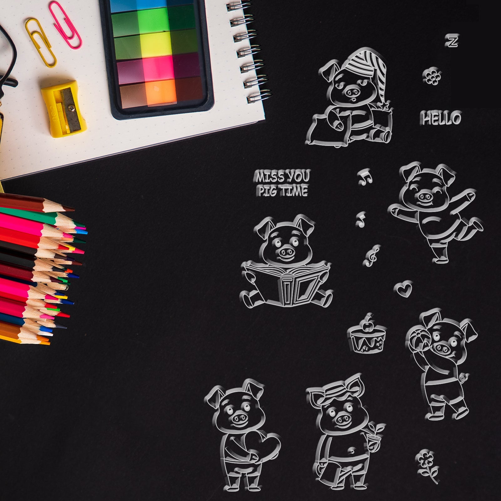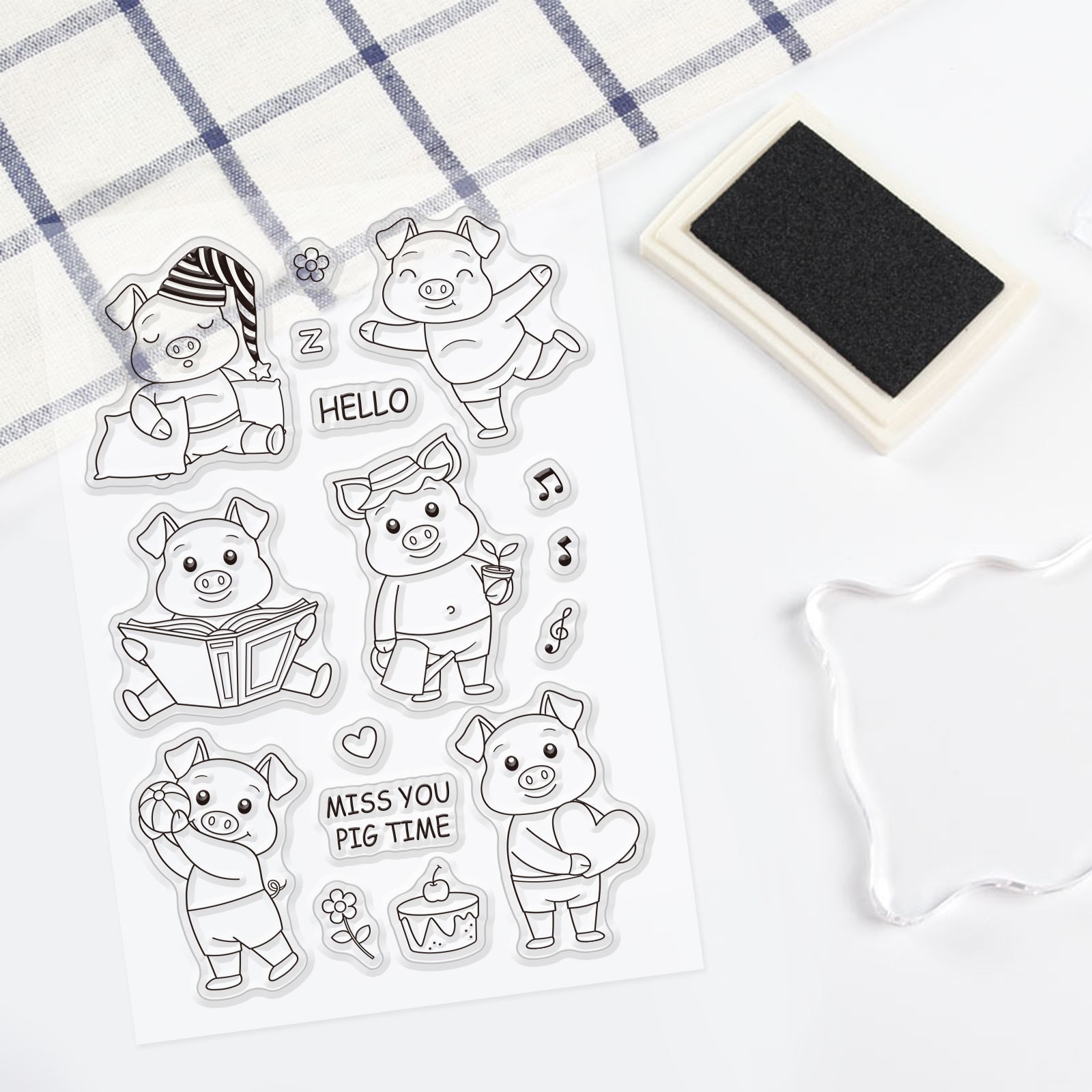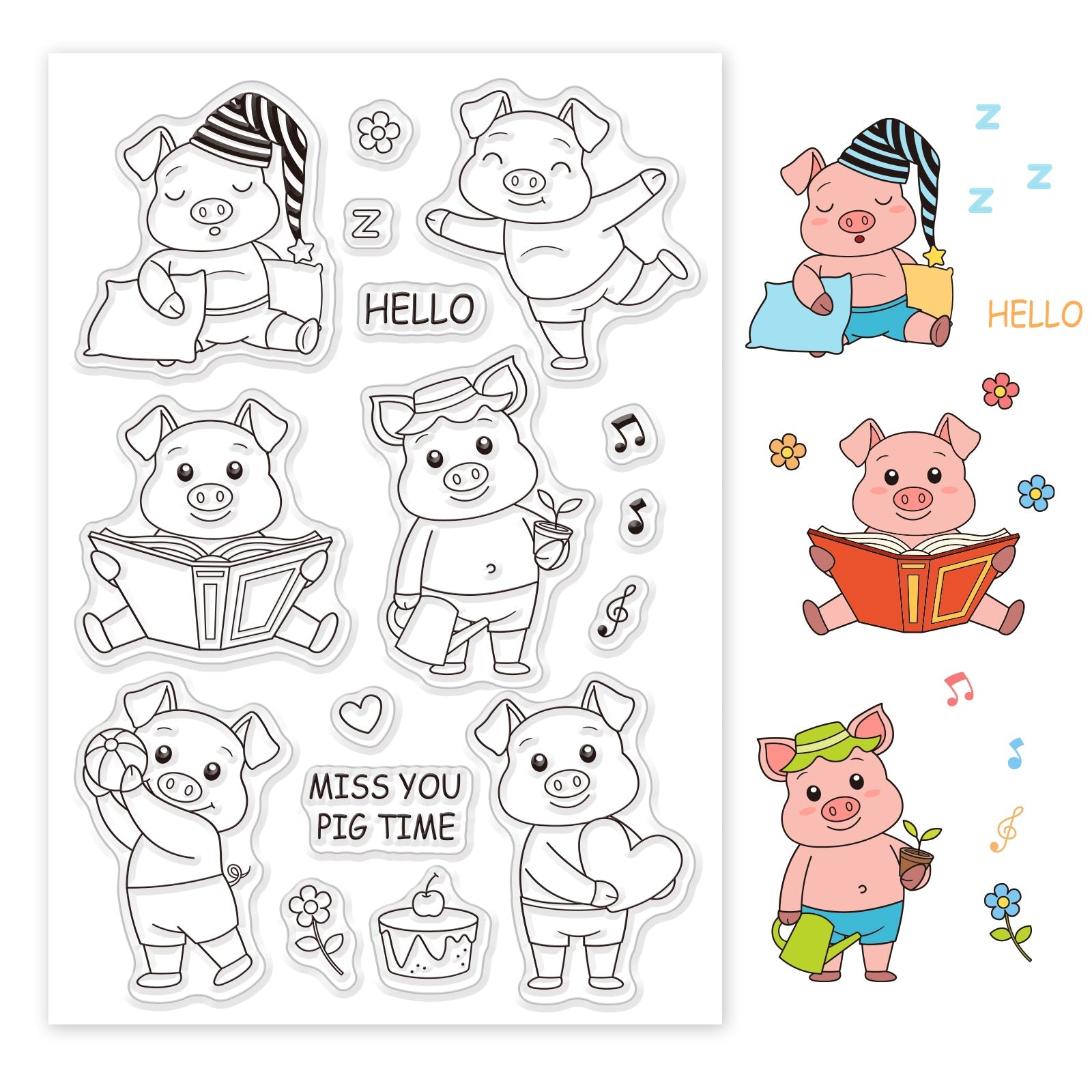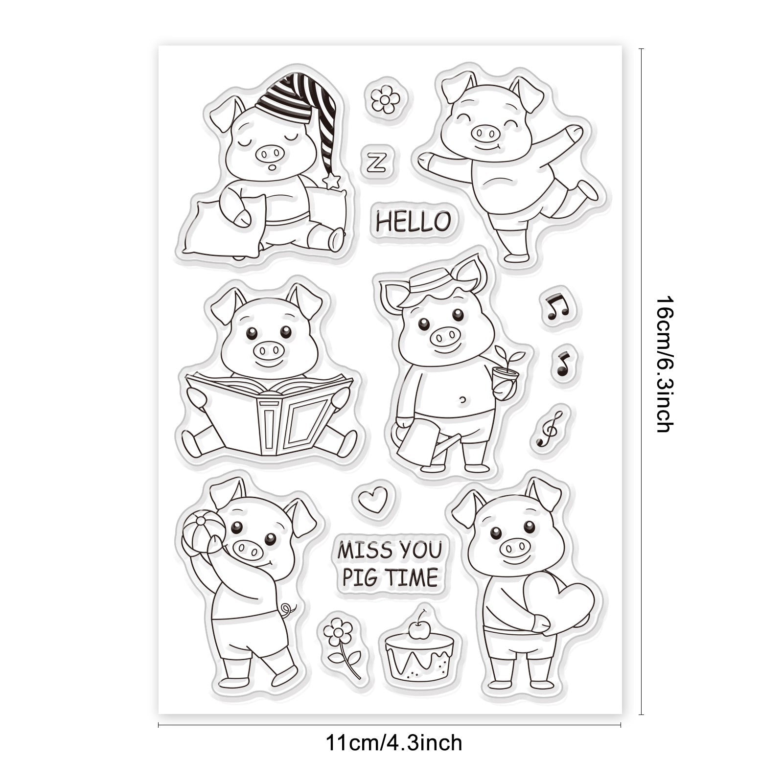 Craspire Cute Pig, Read, Sleep, Dance, Garden, Flower, Love Clear Silicone Stamp Seal for Card Making Decoration and DIY Scrapbooking