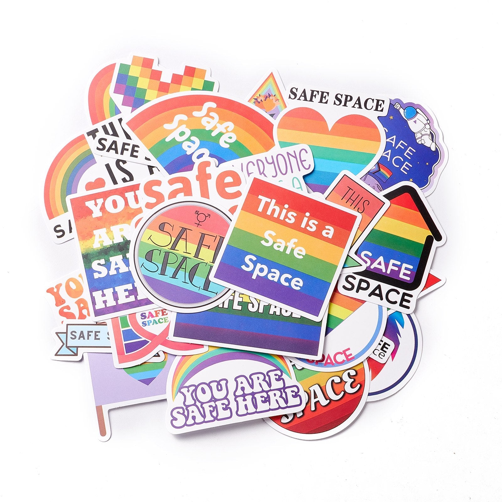 Craspire Safe Space Theme Waterproof Self Adhesive Paper Stickers, for Suitcase, Skateboard, Refrigerator, Helmet, Mobile Phone Shell, Colorful, Sign Pattern, 34~75x45~75x0.2mm, about 50pcs/bag, 5bags/set