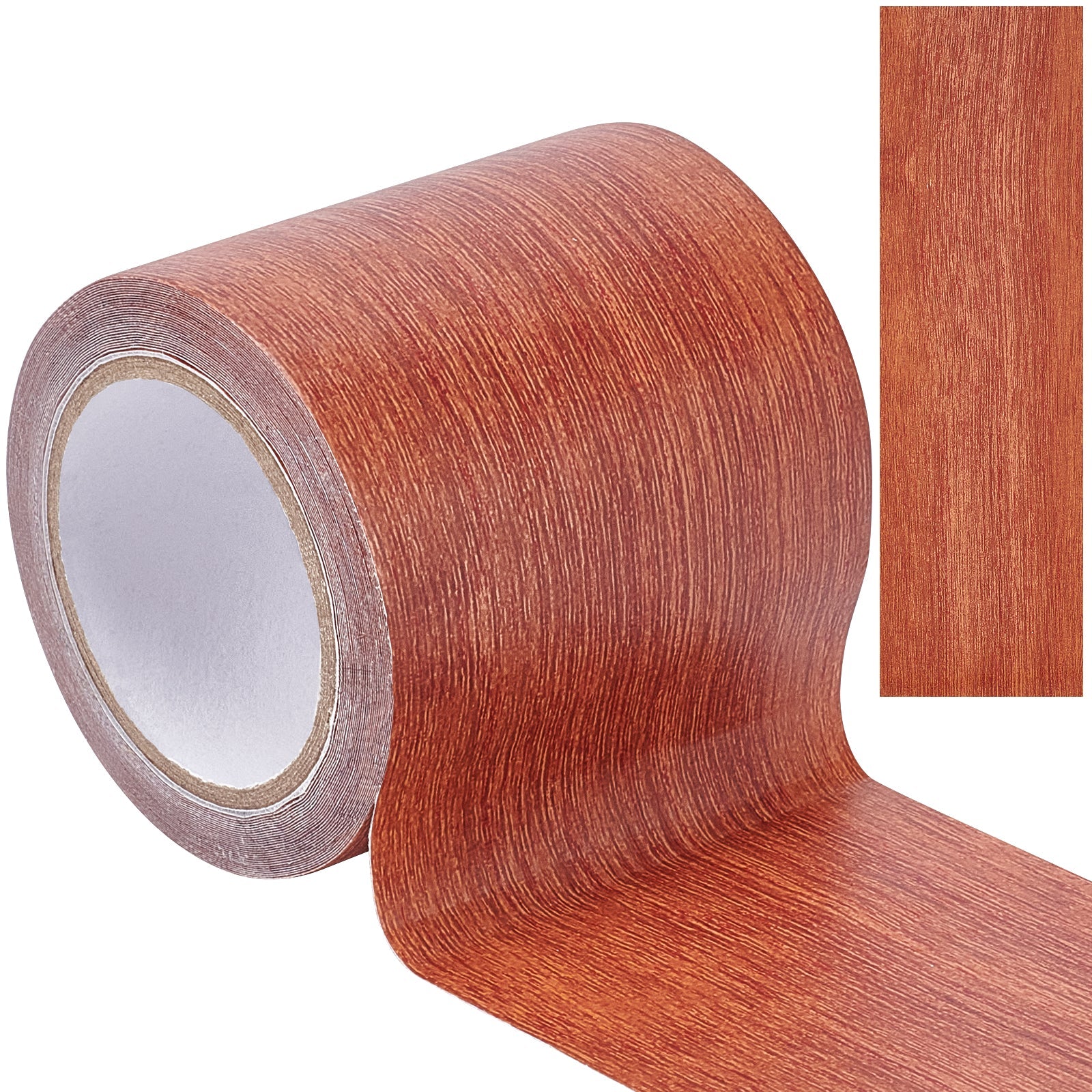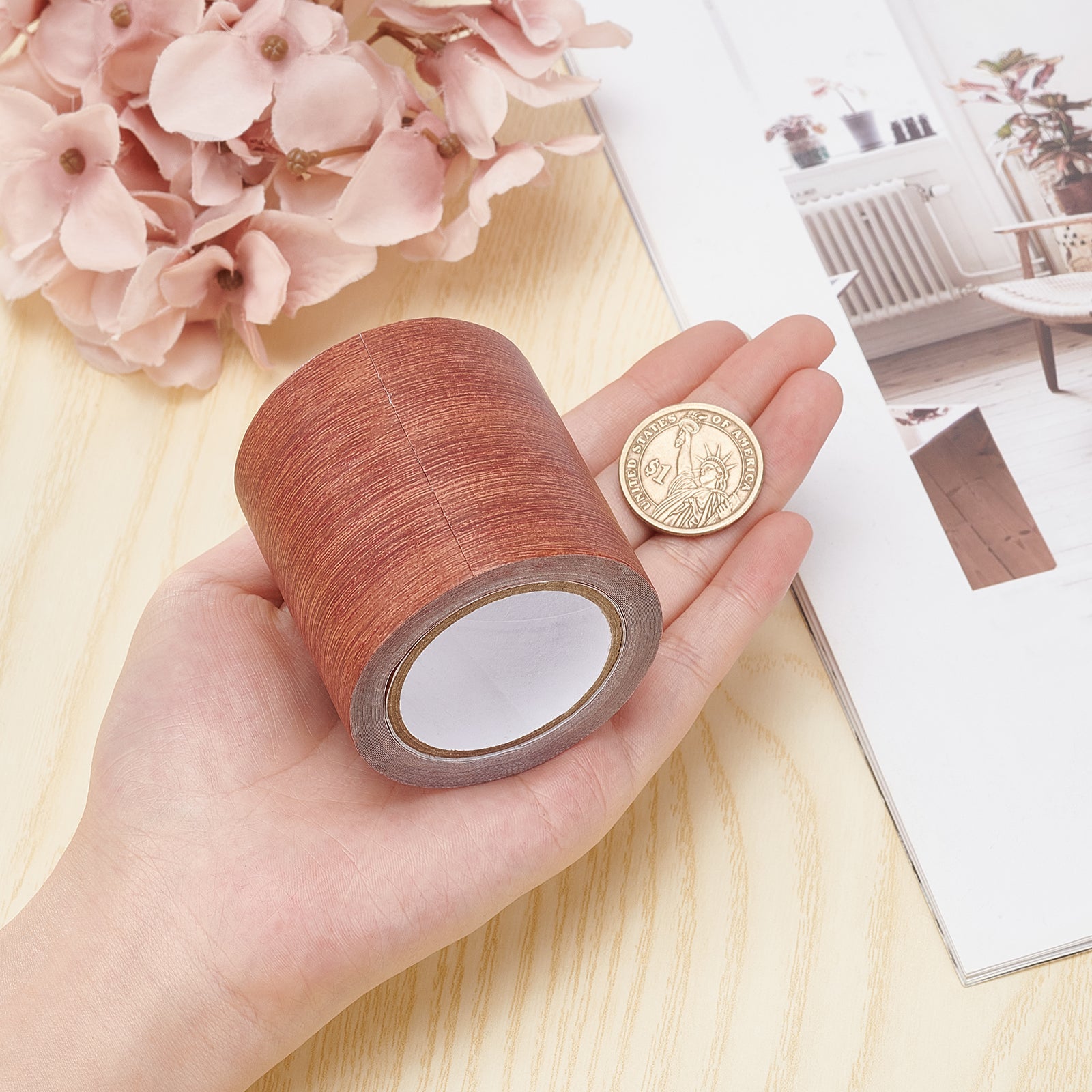 Craspire Non-woven Fabrics Imitation Wood Grain Adhesive Tape, Oakwood Grain Repair Tape Patch, Flat, Sienna, 57mm, about 4.57m/roll