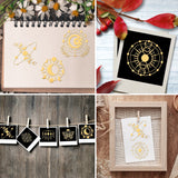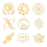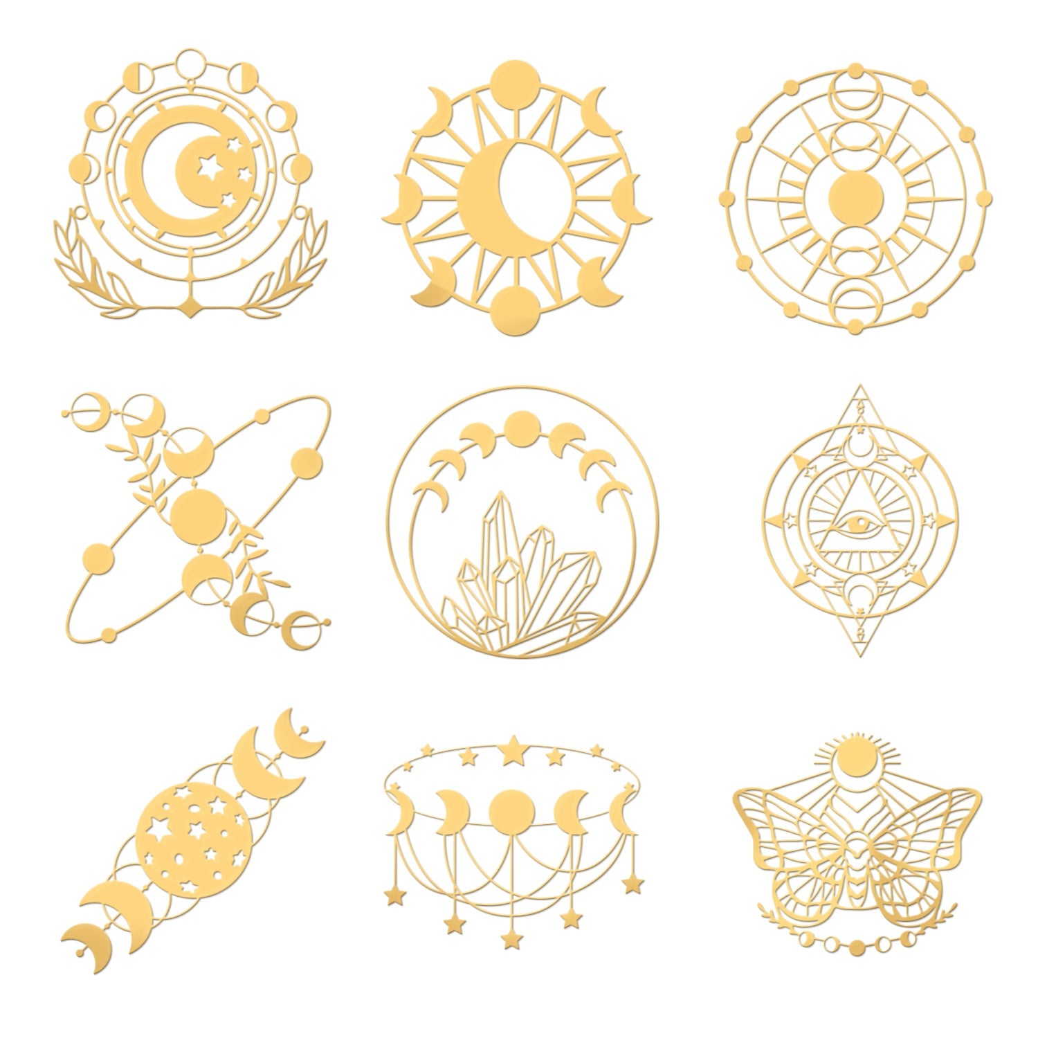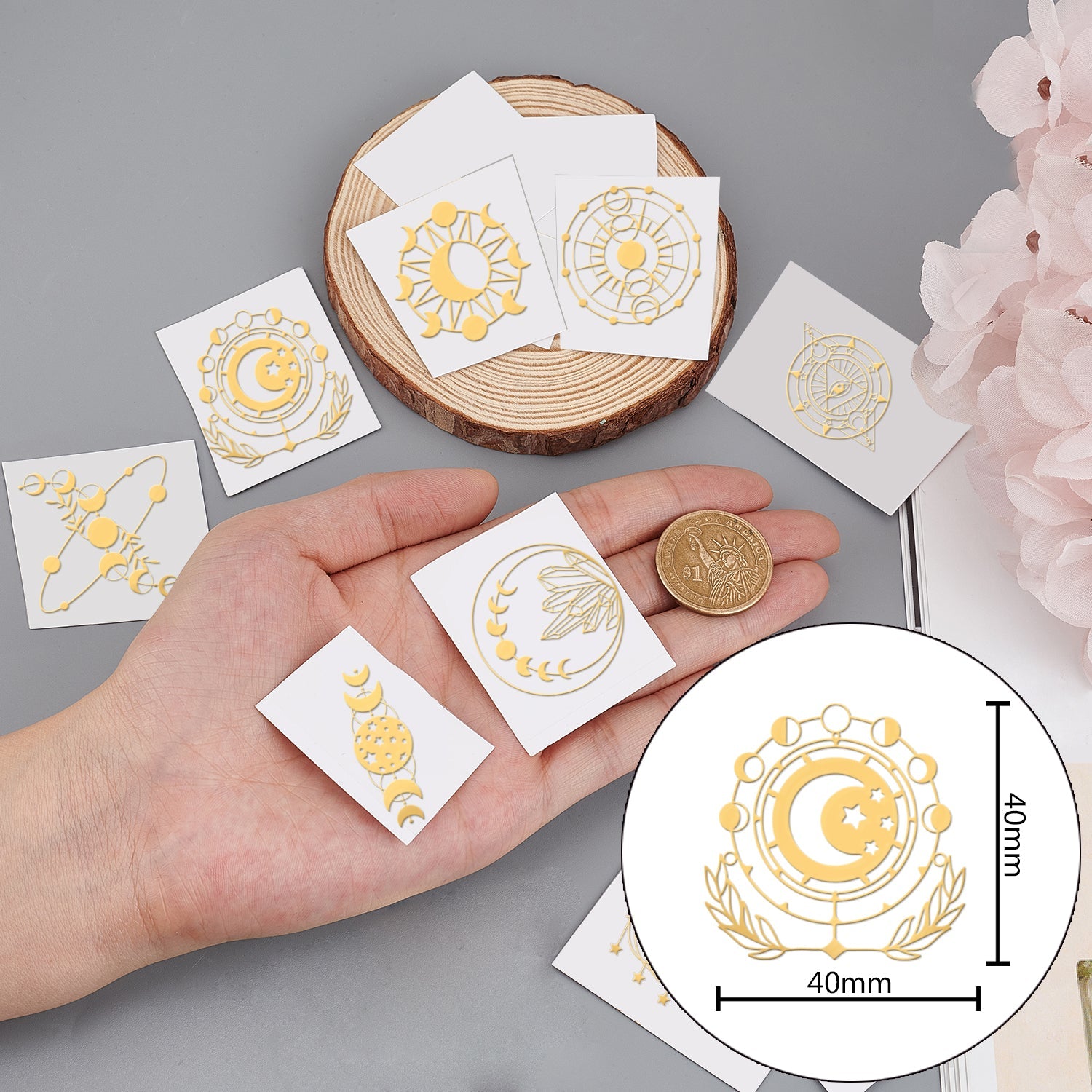 9Pcs 9 Styles Custom Carbon Steel Self-adhesive Picture Stickers, Golden, Moon Pattern