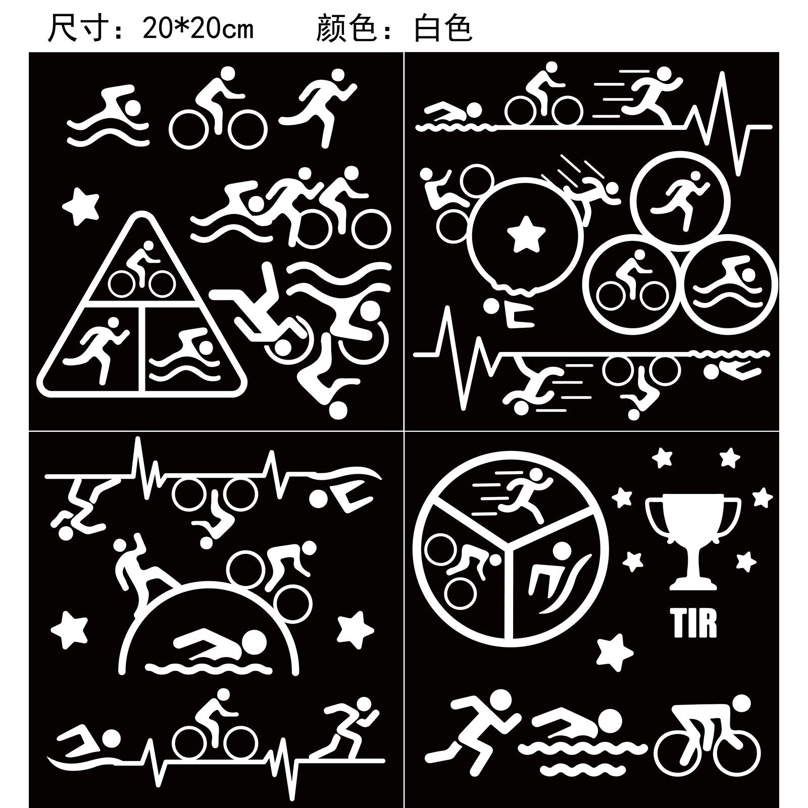 Craspire 4Pcs 4 Styles PET Waterproof Self-adhesive Car Stickers, Reflective Decals for Car, Motorcycle Decoration, White, Sports Themed Pattern, 200x200mm, 1pc/style