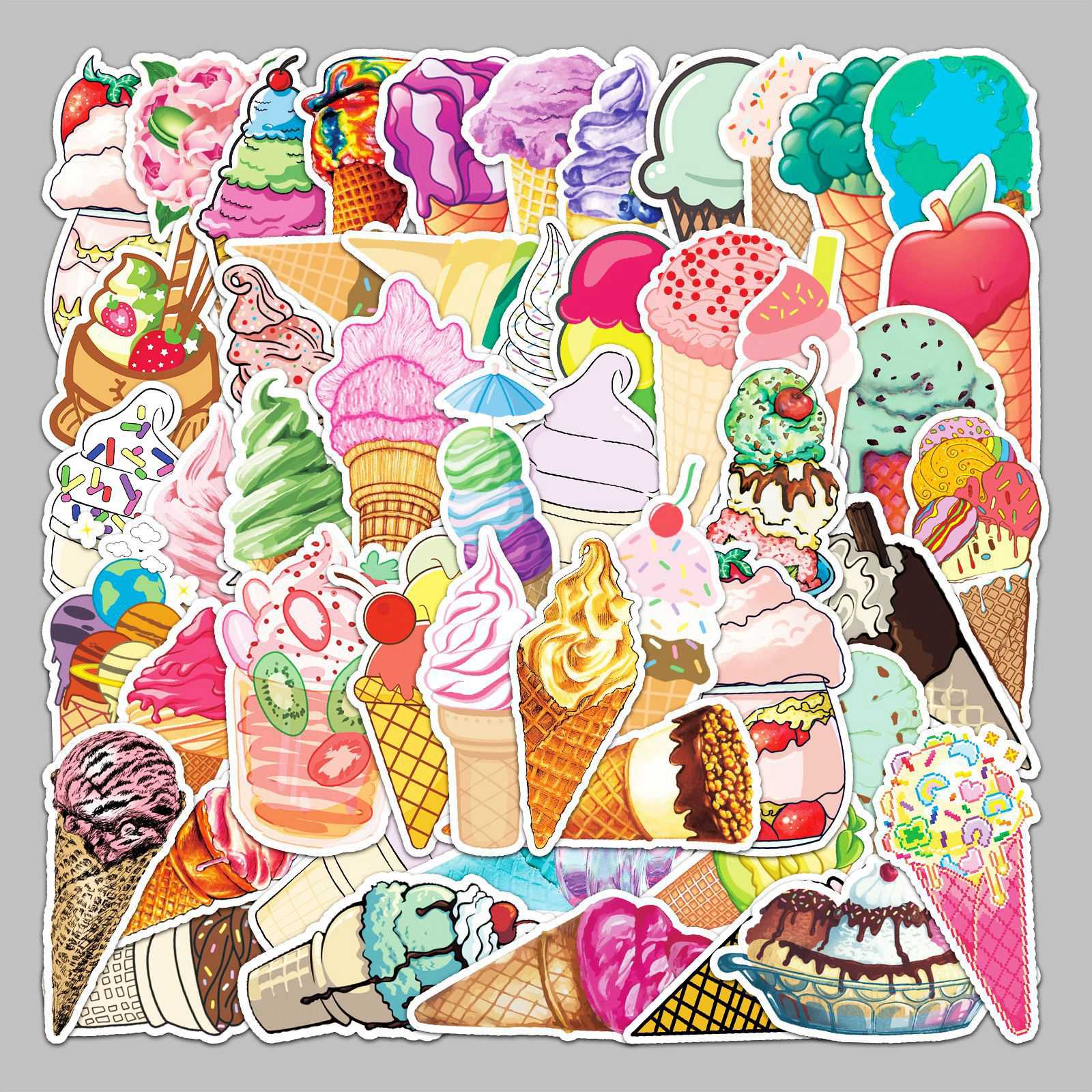 Craspire Waterproof PVC Plastic Sticker Labels, Self-adhesion, for Card-Making, Scrapbooking, Diary, Planner, Cup, Mobile Phone Shell, Notebooks, Ice Cream Pattern