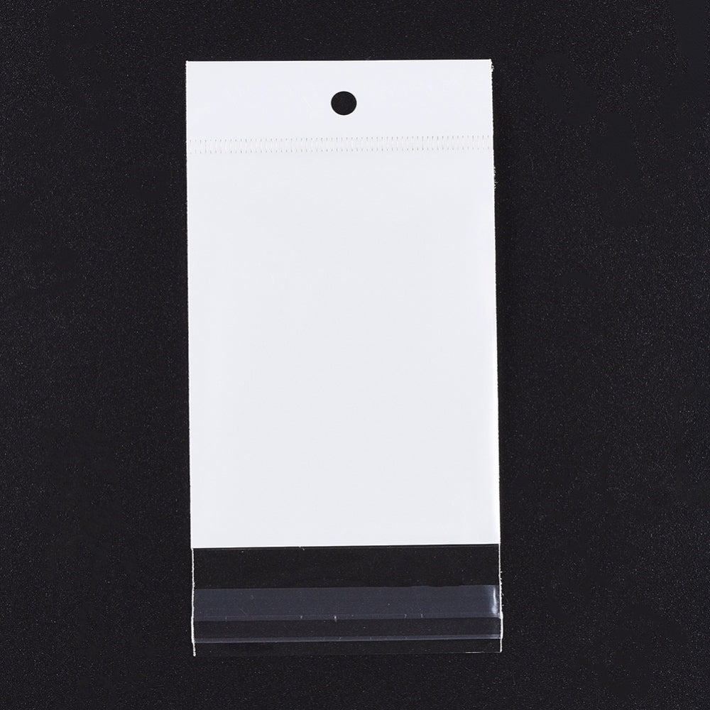 1000 pc Pearl Film OPP Cellophane Bags, Self-Adhesive Sealing, with Hang Hole, Rectangle, White, 13.7x8cm, Unilateral Thickness: 0.035mm, Inner Measure: 9x8cm, Hole: 6mm