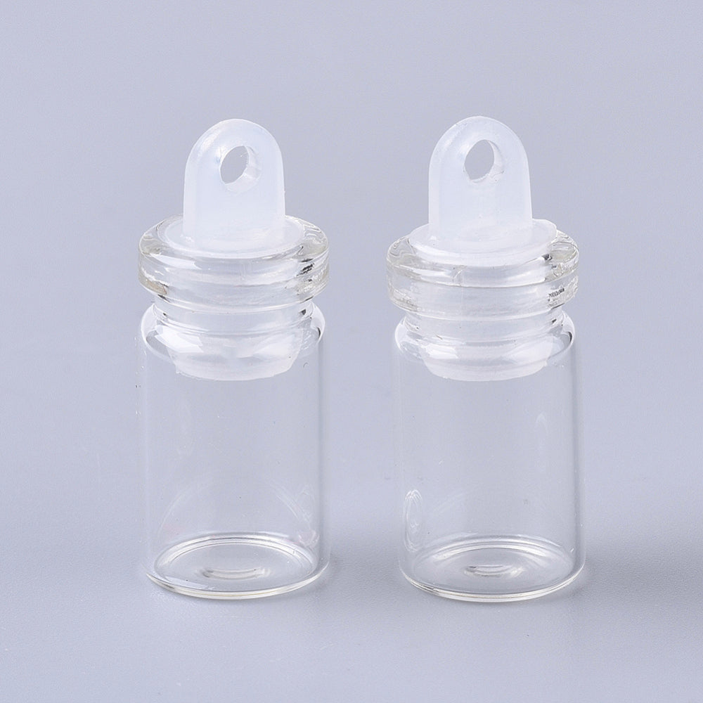 50 pcs Glass Bottle Pendant Decoration, Wishing Bottle, with Plastic Plug, Clear, 24.5x10mm, Hole: 2mm, Capacity: 1ml(0.03 fl. oz)