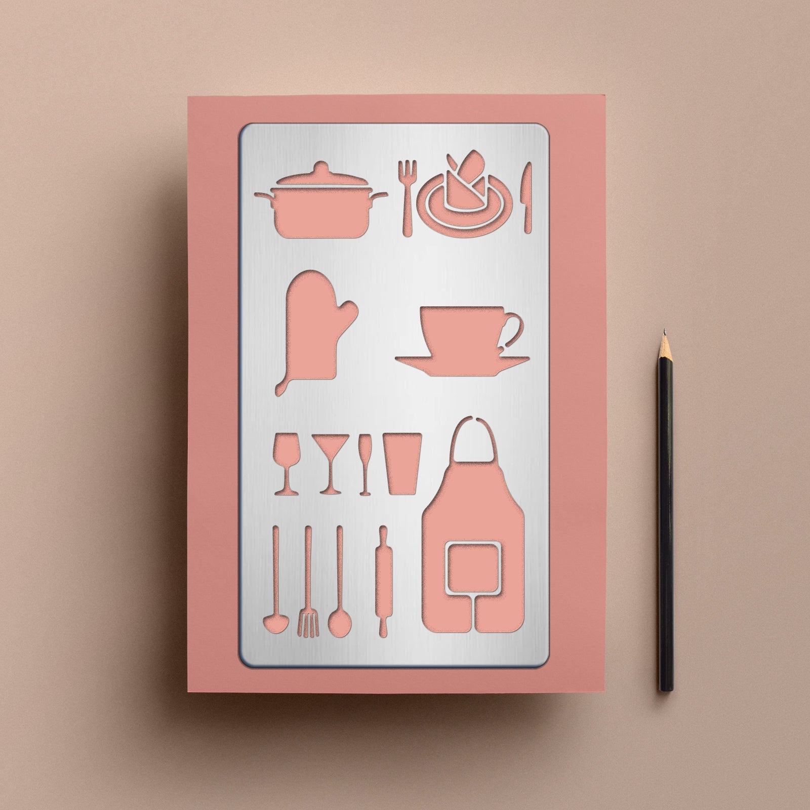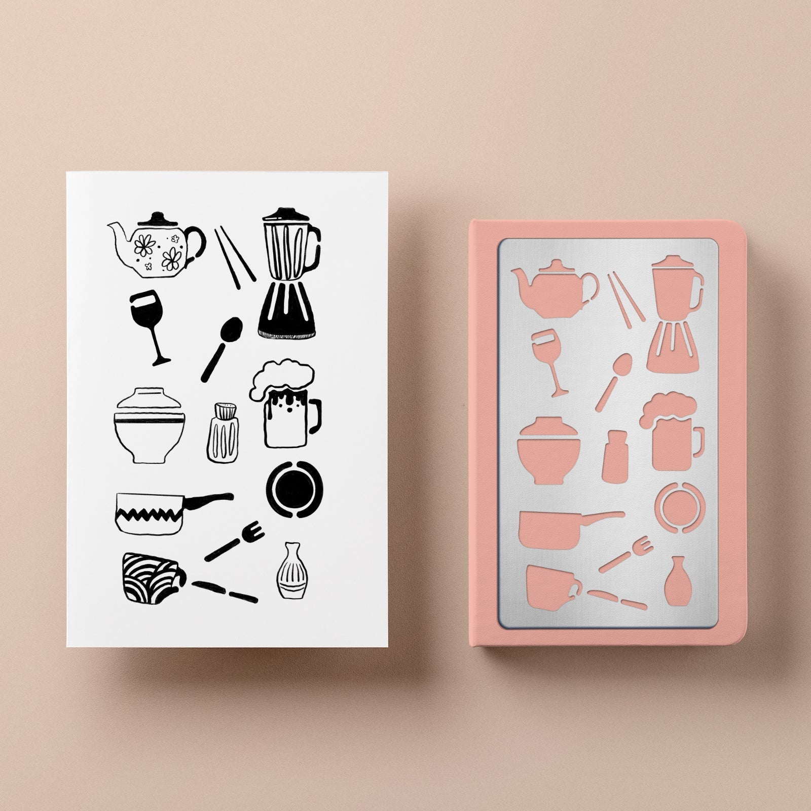 CRASPIRE 2Pcs 2 Style 304 Stainless Steel Cutting Dies Stencils, for DIY Scrapbooking/Photo Album, Decorative Embossing, Matte Platinum Color, Tableware Pattern, 17.7x10.1cm, 1pc/style