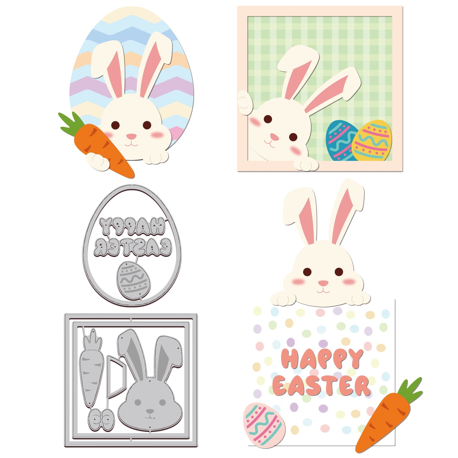 CRASPIRE Easter Bunny Border Carbon Steel Cutting Dies Stencils, for DIY Scrapbooking/Photo Album, Decorative Embossing DIY Paper Card