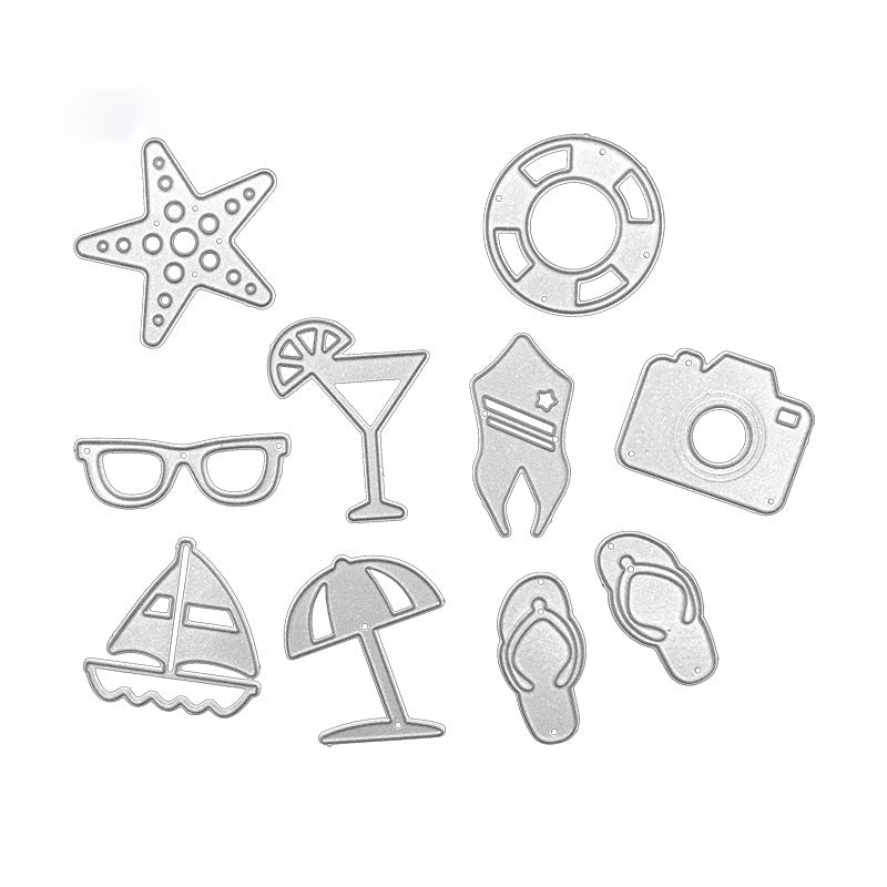 CRASPIRE Carbon Steel Cutting Dies Stencils, for DIY Scrapbooking, Photo Album, Decorative Embossing, Paper Card, Matte Platinum Color, Beach Theme Pattern, 9.7x14.6cm, 10pcs/set