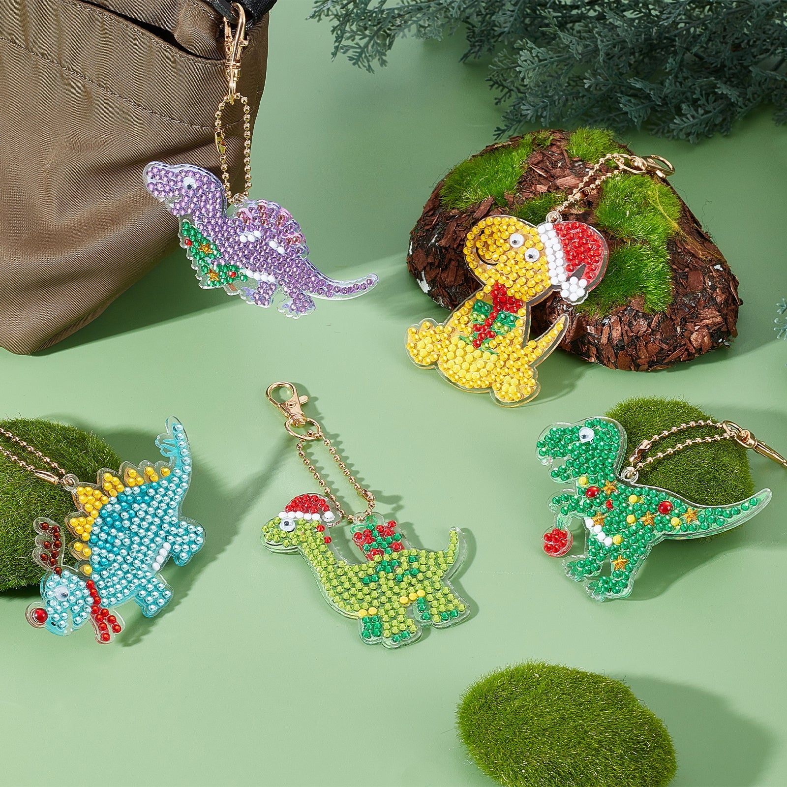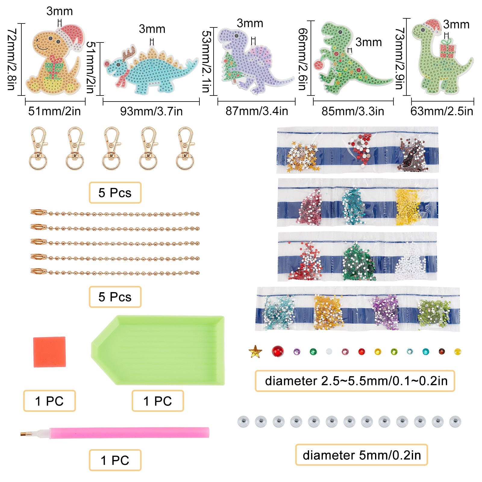 Craspire DIY Diamond Painting Keychain Kits, Dinosaur Theme Diamond Painting Mold, Resin Rhinestones, Diamond Sticky Pen, Tray Plate and Glue Clay, Ball Chain Keychain and Swivel Clasp, Mixed Color, 0.25x0.1cm, 1set
