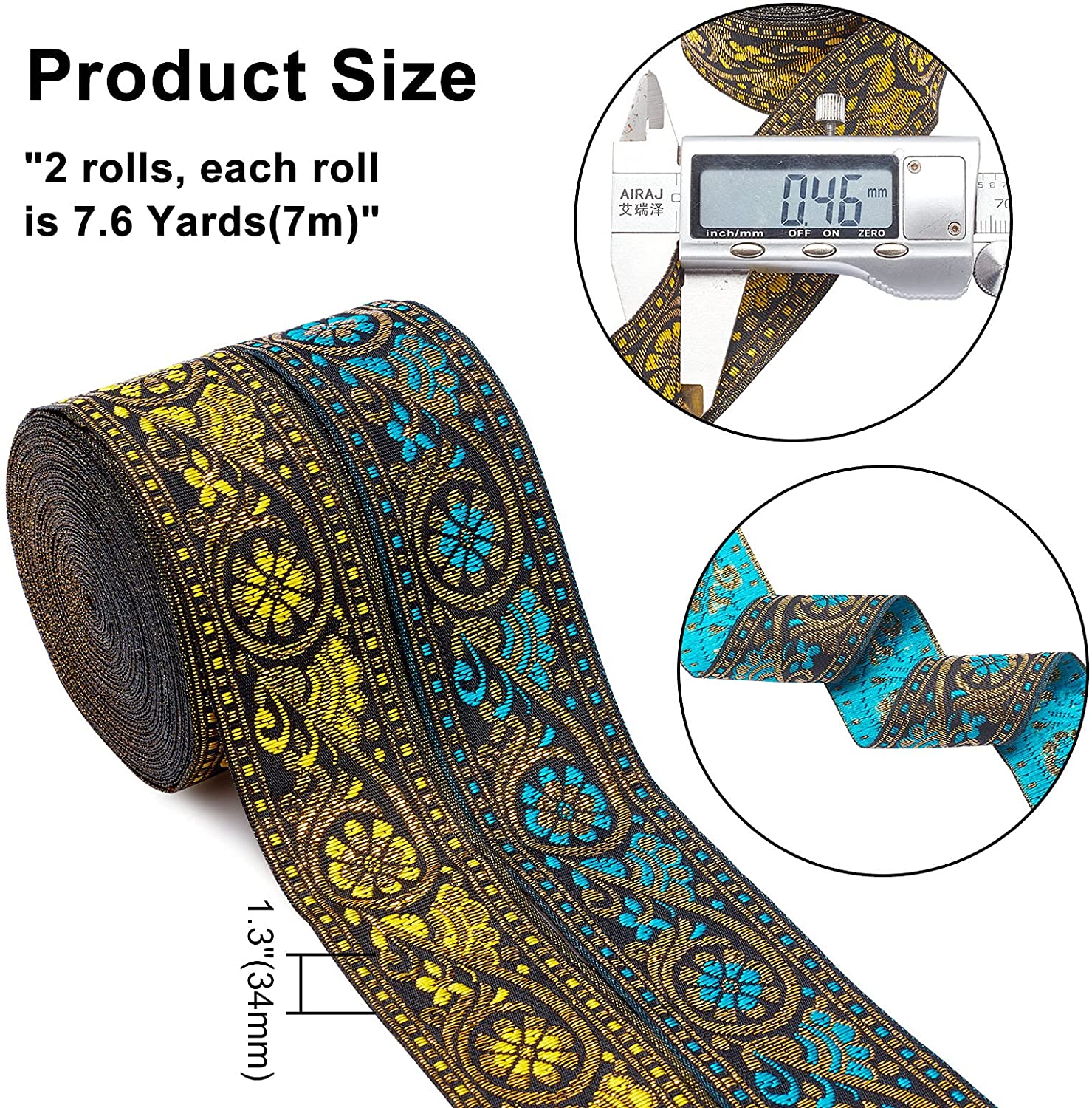 2rolls 7.6 Yards 1.3inch Fabric Embroidered Trim, Vintage Jacquard Ribbon Sewing Woven TrimEmobridered Woven Ribbon Fabric Embroidered Trim d¡§