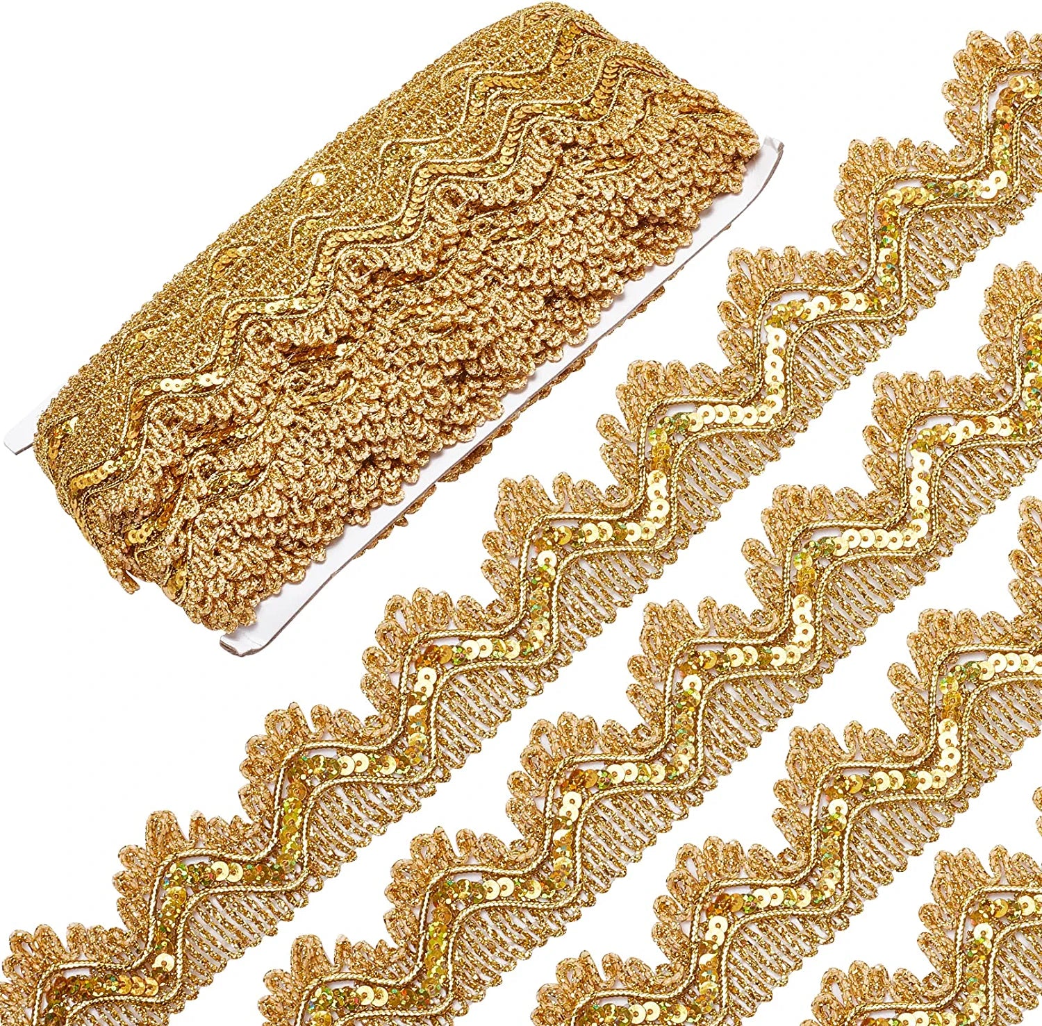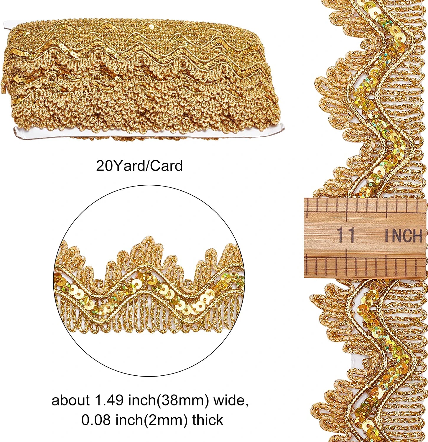 20Yd 1.5 Inch Gold Beaded Lace Trim Sequined Fabric Ribbon Glitter Mesh Decorative Wedding Flat Bling Paillette Sewing Embroidered Lace Tulle Applique for Clothing Curtain Latin Dance Skirt