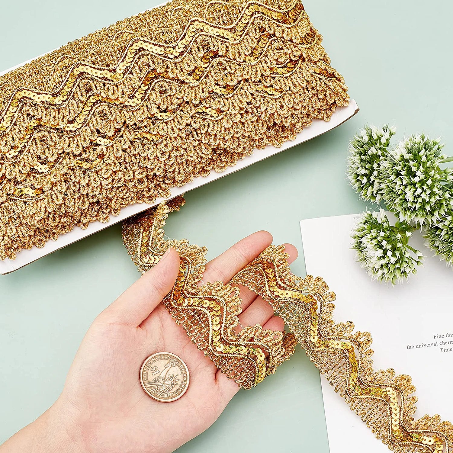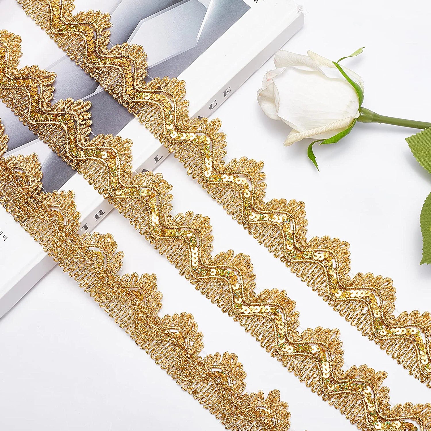 • 20 YARD 1.5 INCH: 20 Yard gold beaded lace trim, about 1.5 inch/3.8cm wide, long enough to realize your ideas of embellishing clothes.