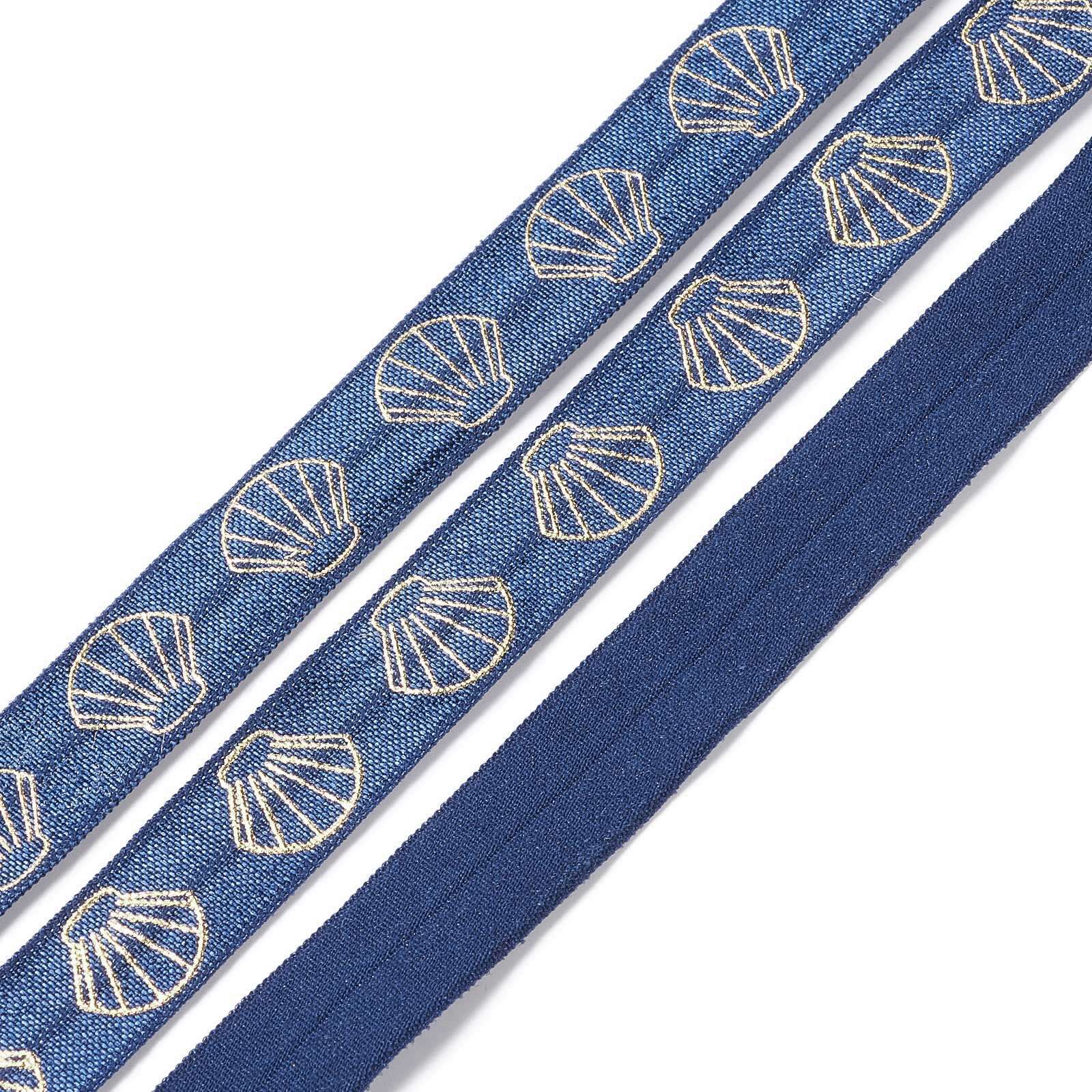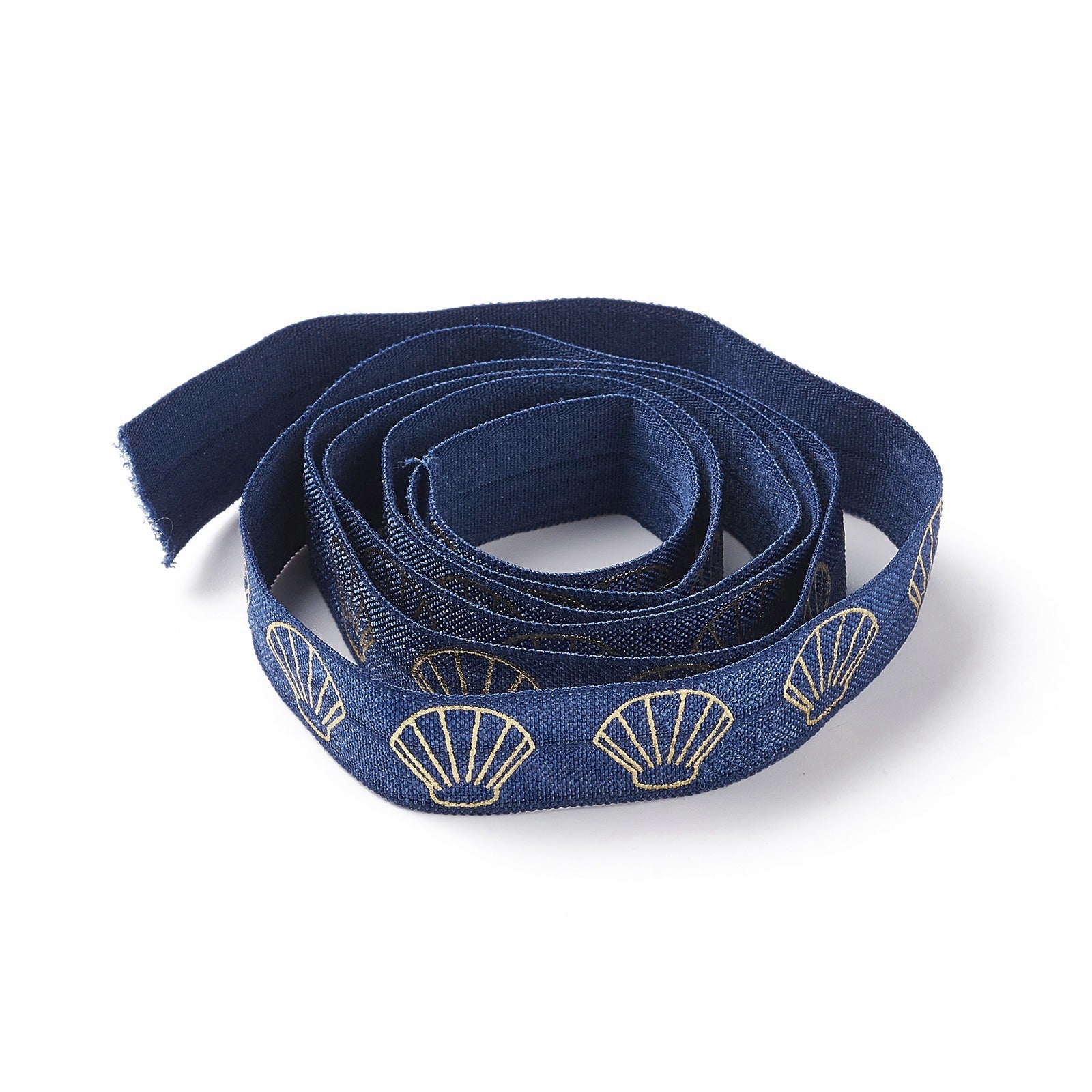 - Polyester Elastic Printed Ribbon, Hot Stamping Ribbon, Flat with Footprint & Shell & Anchor Pattern, Mixed Color, Mixed Patterns, 5/8 inch(15mm), 1 yard/pc