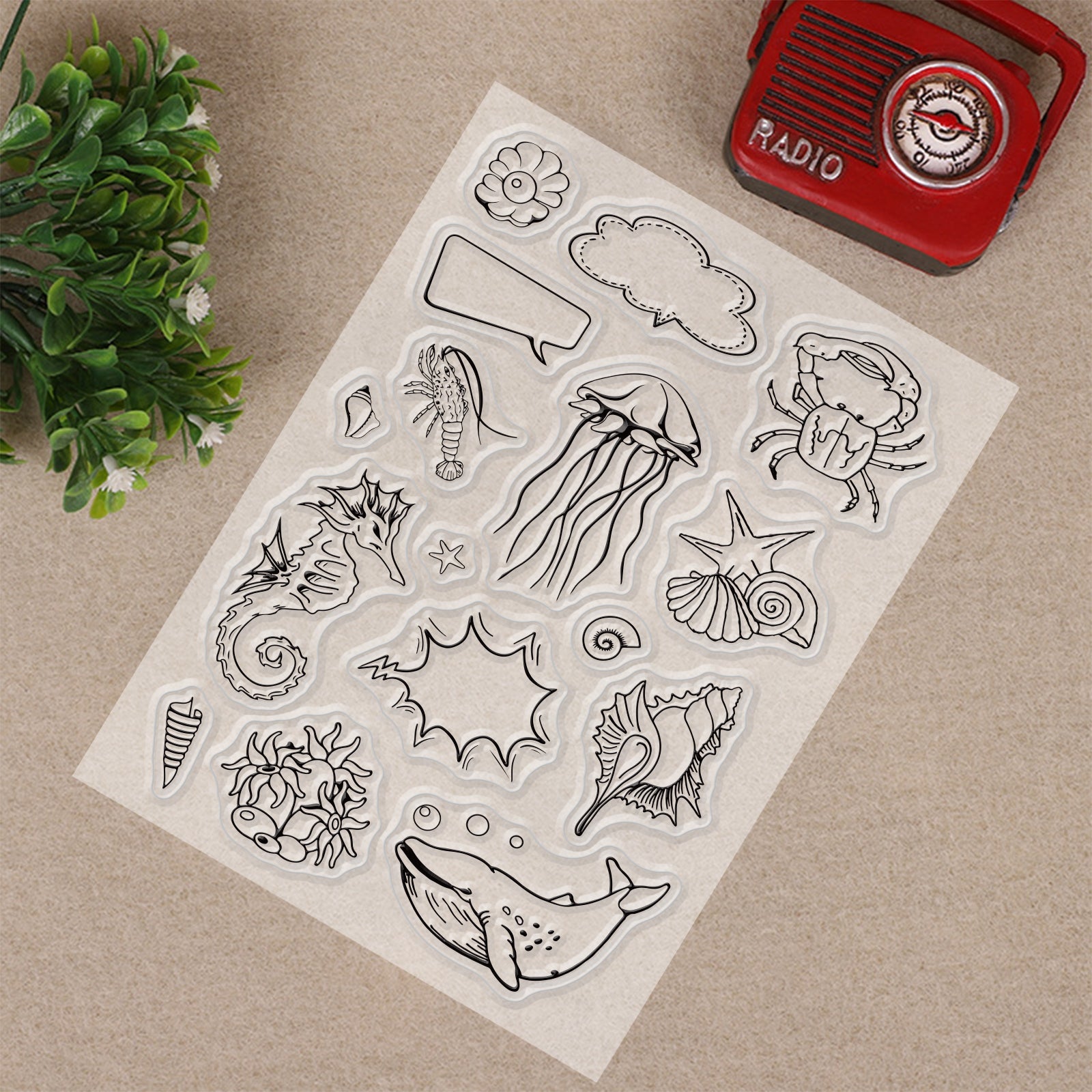 Craspire Ocean Conch Seaweed Shell Clear Stamps Silicone Stamp Cards for Card Making Decoration and DIY Scrapbooking