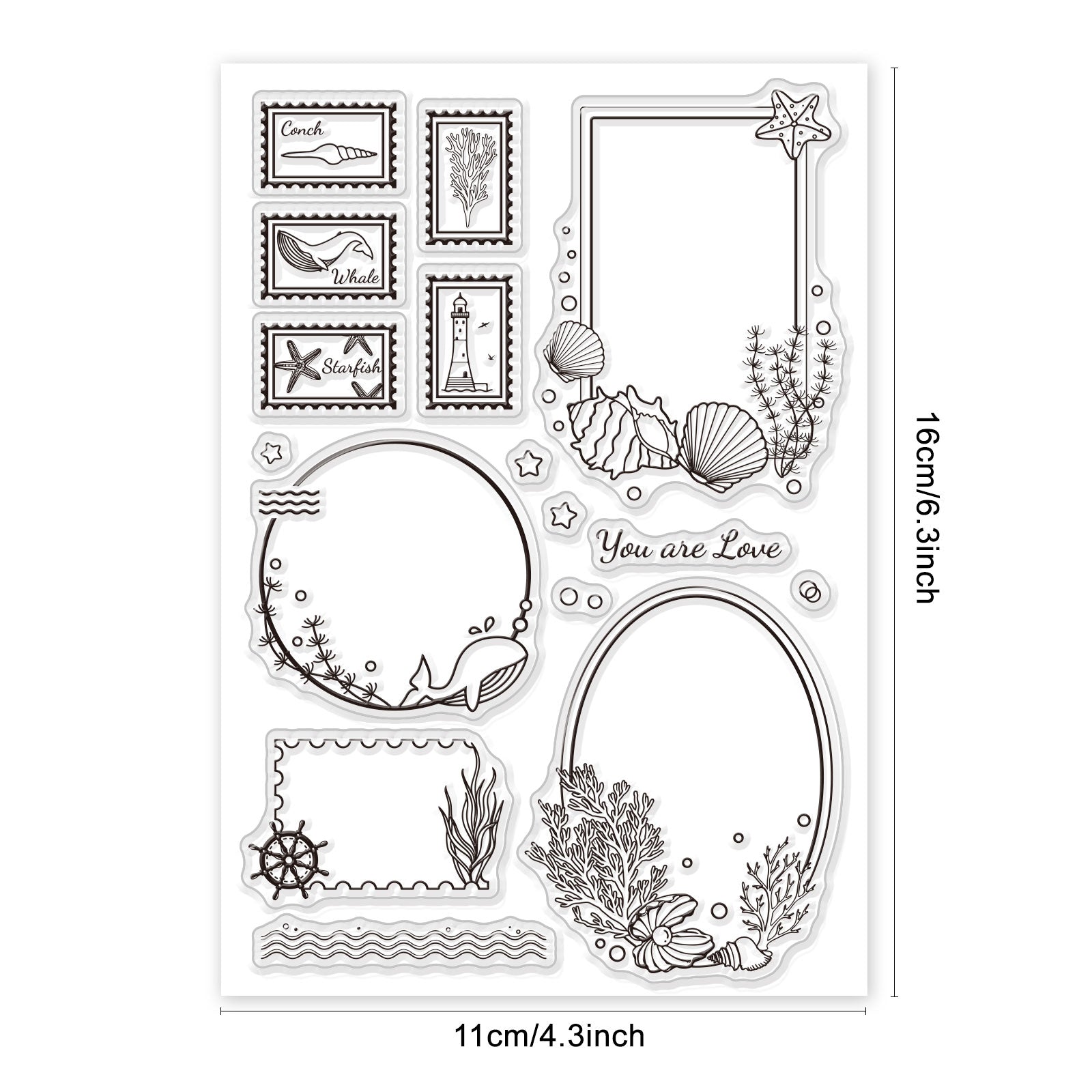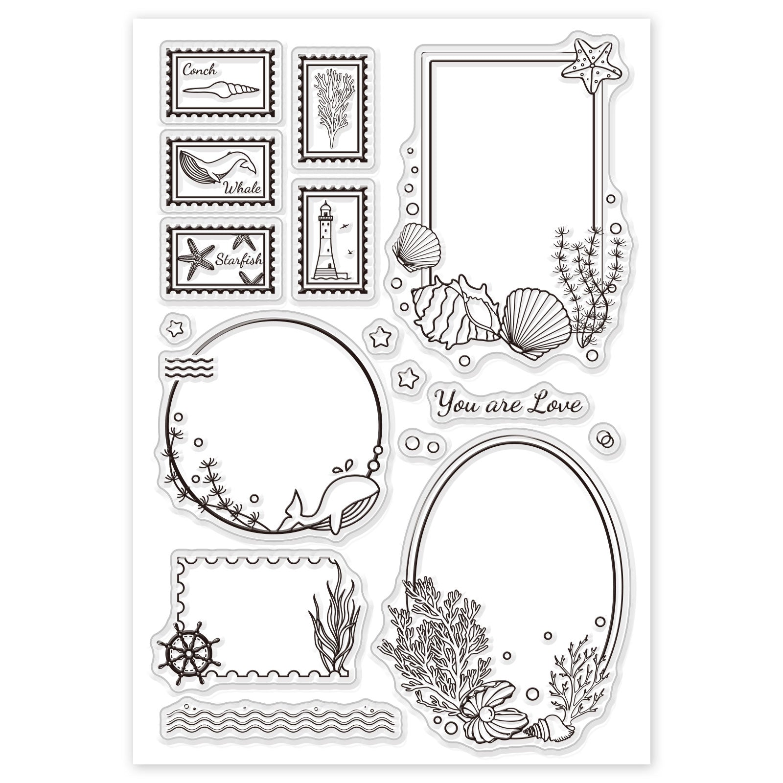 Craspire Ocean Theme Frames Clear Stamps Silicone Stamp Transparent Stamp for Card Making Decoration and DIY Scrapbooking Photo Frame Gifts