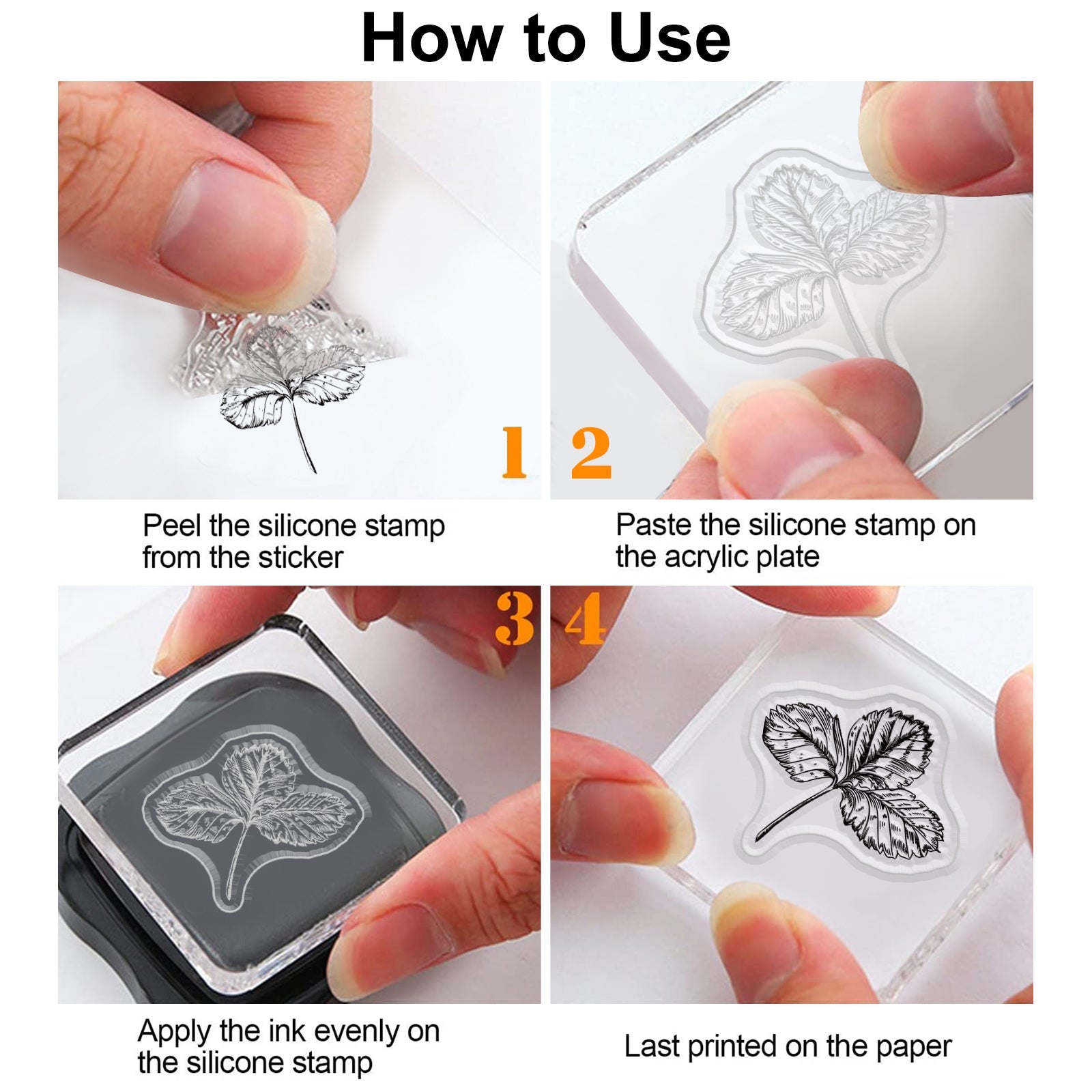 Peel small clear stamps from transparent sheet.Position stamp on an acrylic block(not included).