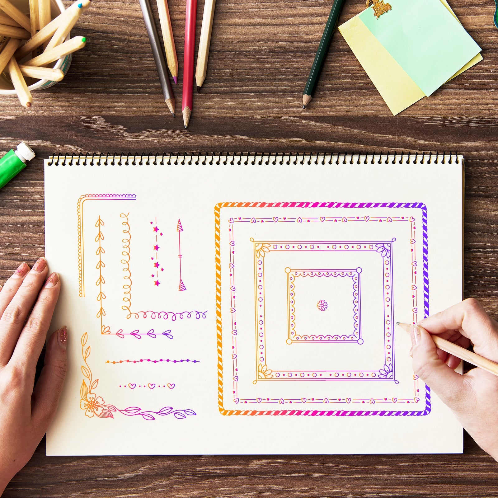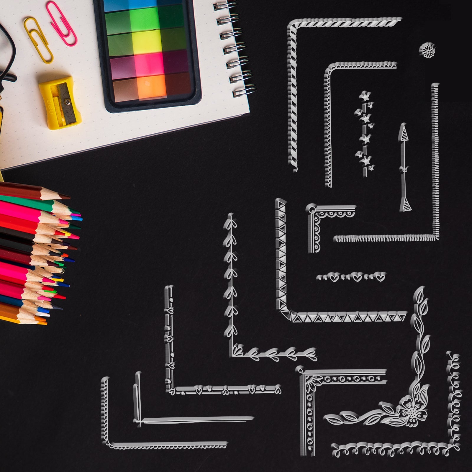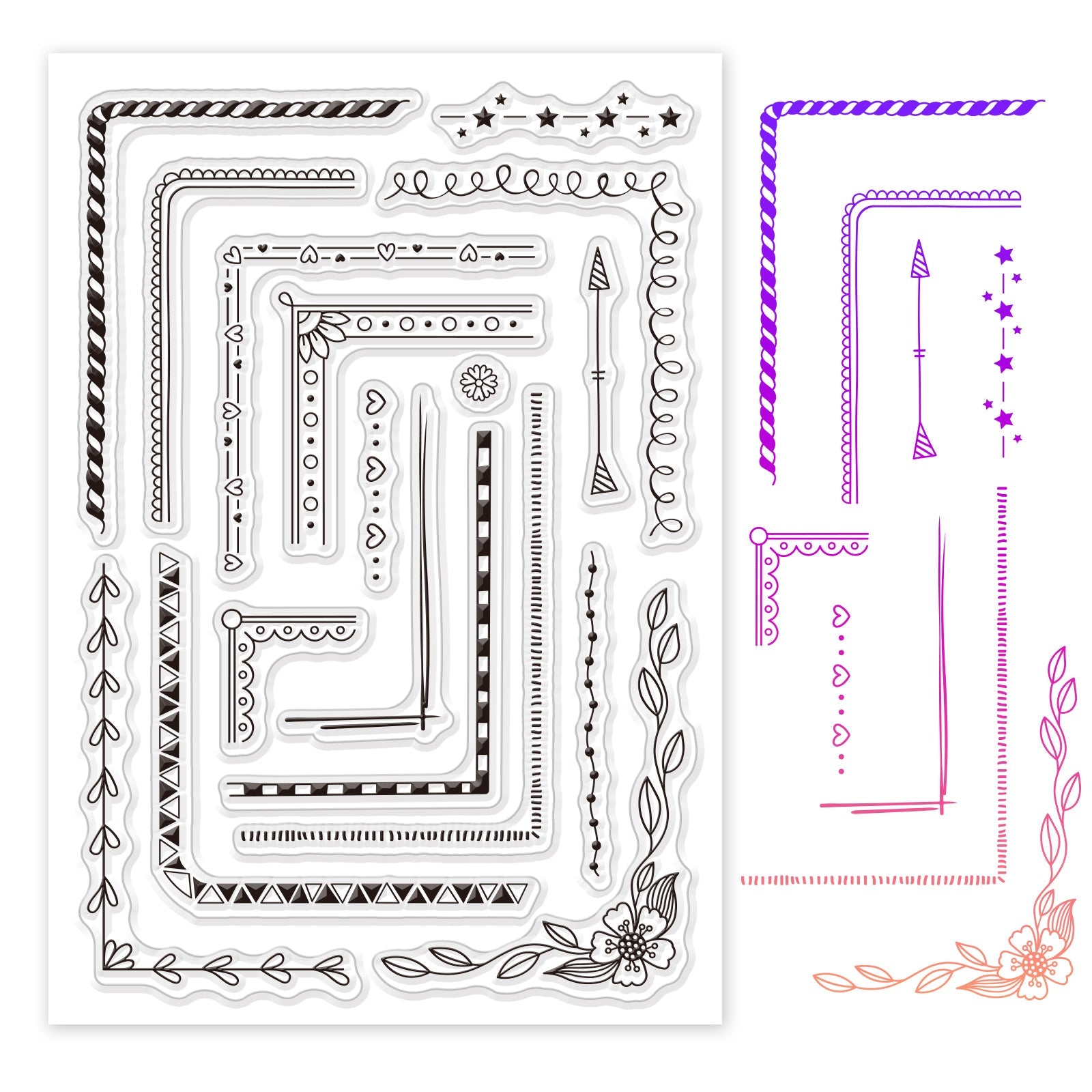 Craspire Doodles, Corners, Boxes, Flowers, Leaves, Stars, Geometric, Love Element Decoration Clear Silicone Stamp Seal for Card Making Decoration and DIY Scrapbooking