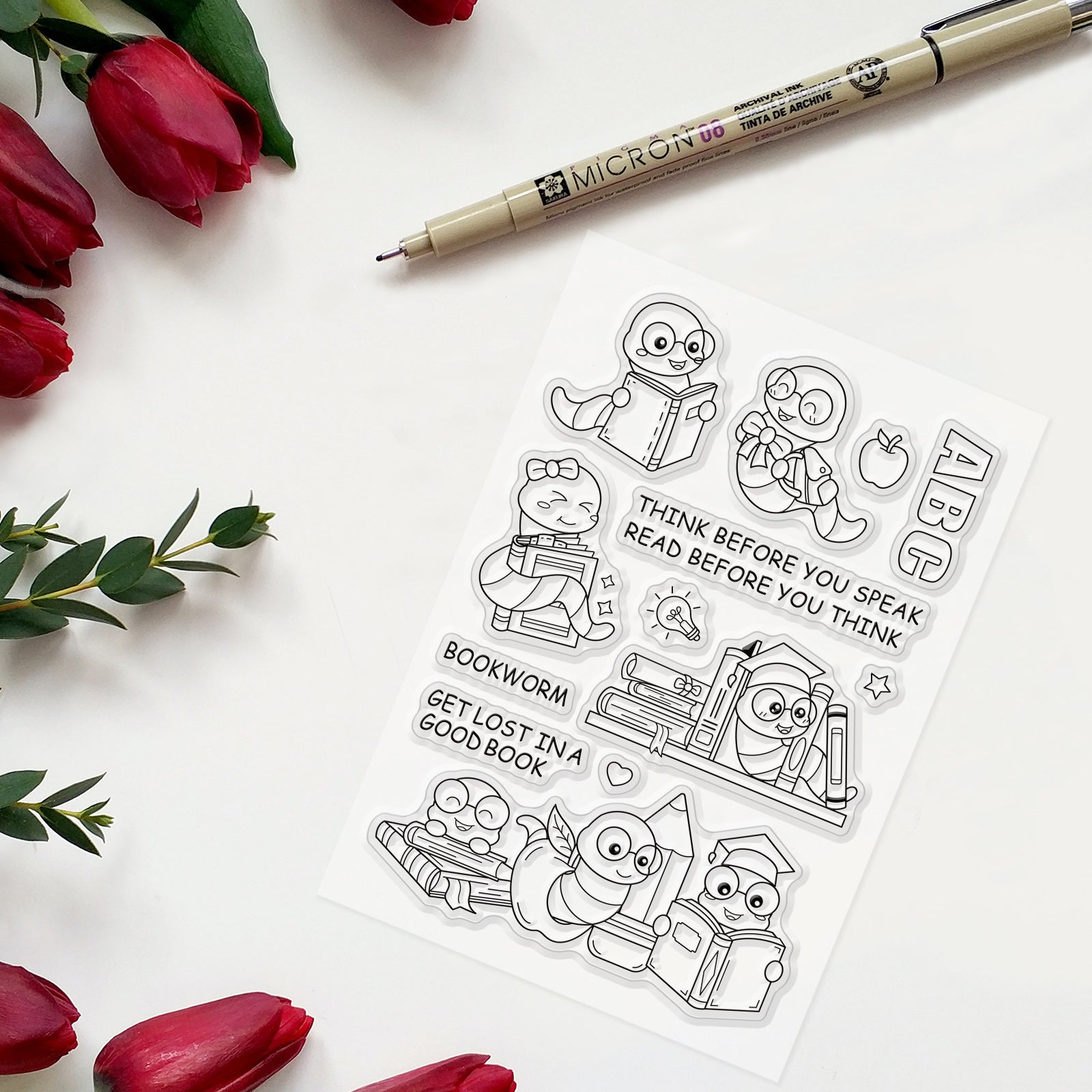 Craspire Bookworm Clear Silicone Stamp Seal for Card Making Decoration and DIY Scrapbooking