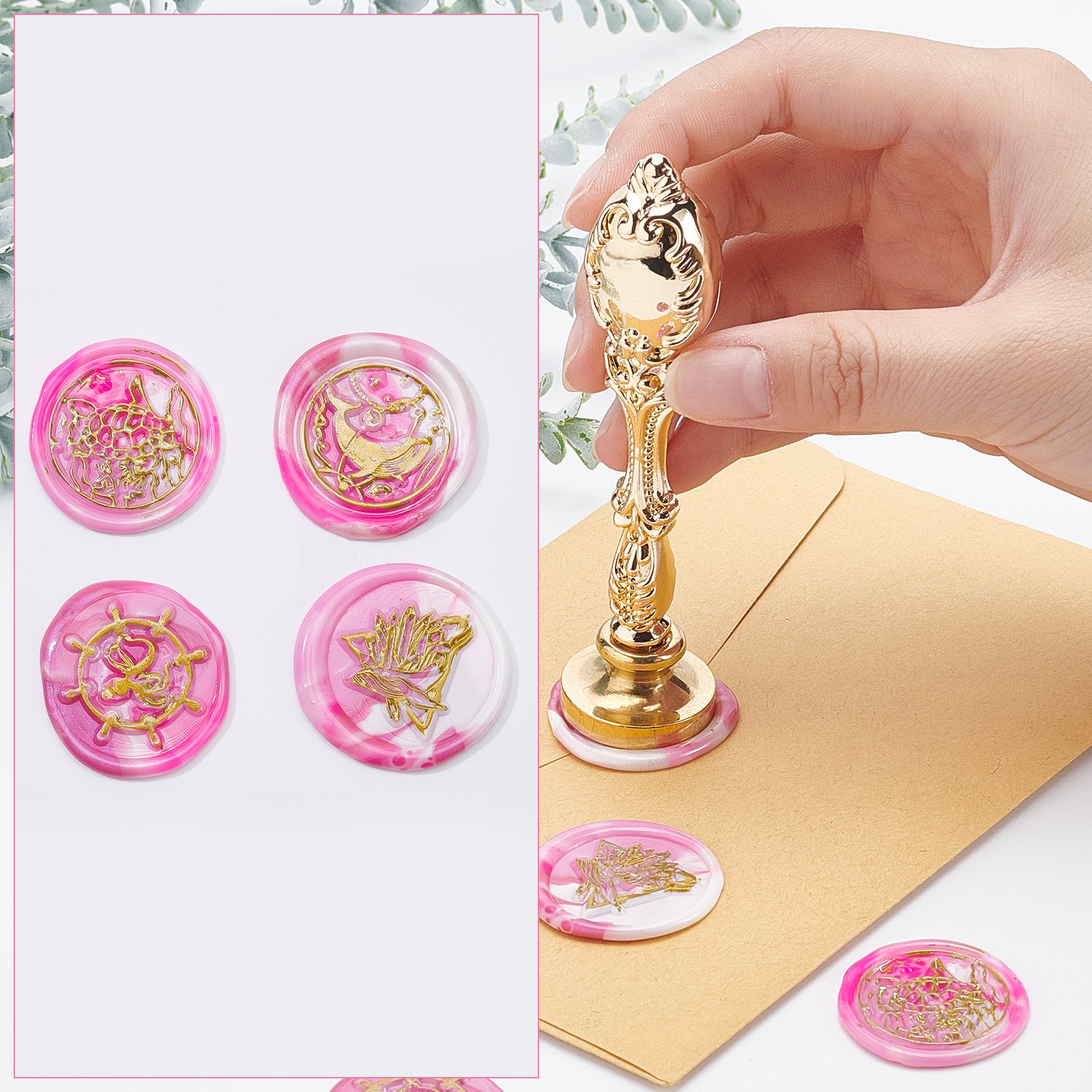- Wax Seal Stamp Set: 4 pieces brass stamp heads(25mm in diameter) + 1 pieces universal alloy handle. (No wax included).