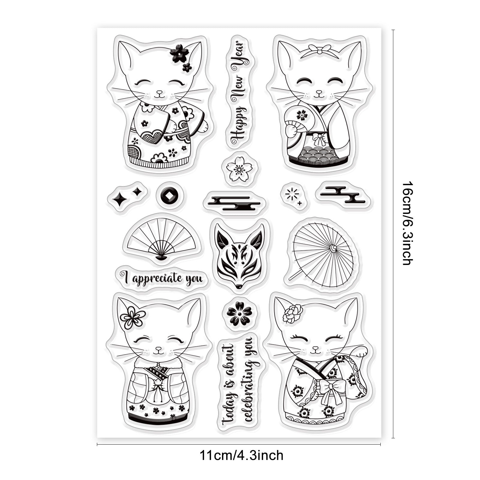 Craspire PVC Plastic Stamps, for DIY Scrapbooking, Photo Album Decorative, Cards Making, Stamp Sheets, Cat Pattern, 16x11x0.3cm