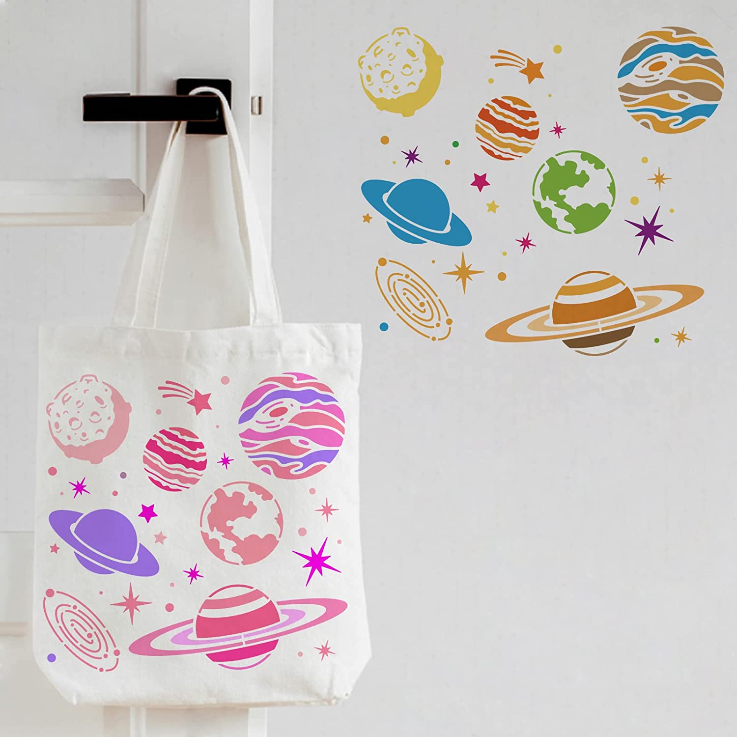 - Planets Galaxy Stencils: Plastic stencil is consist of six planets, galaxy and star patterns, ideal for drawing tracing, house embellishment, making a pretty addition to your home. Make your life full of art and fun. Size is 30x30cm(11.8x11.8 inch).