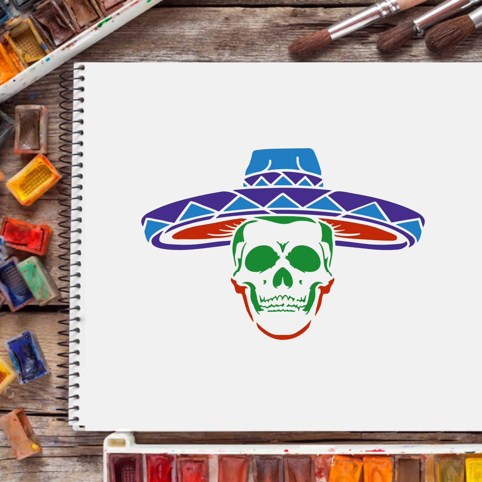 Plastic Drawing Painting Stencils Templates, Rectangle, Skull Pattern