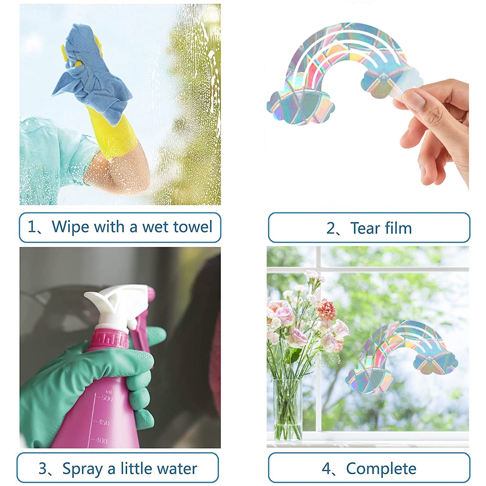 Craspire Rainbow PVC Laser Adhesive Stickers, Electrostatic Stickers, Colorful