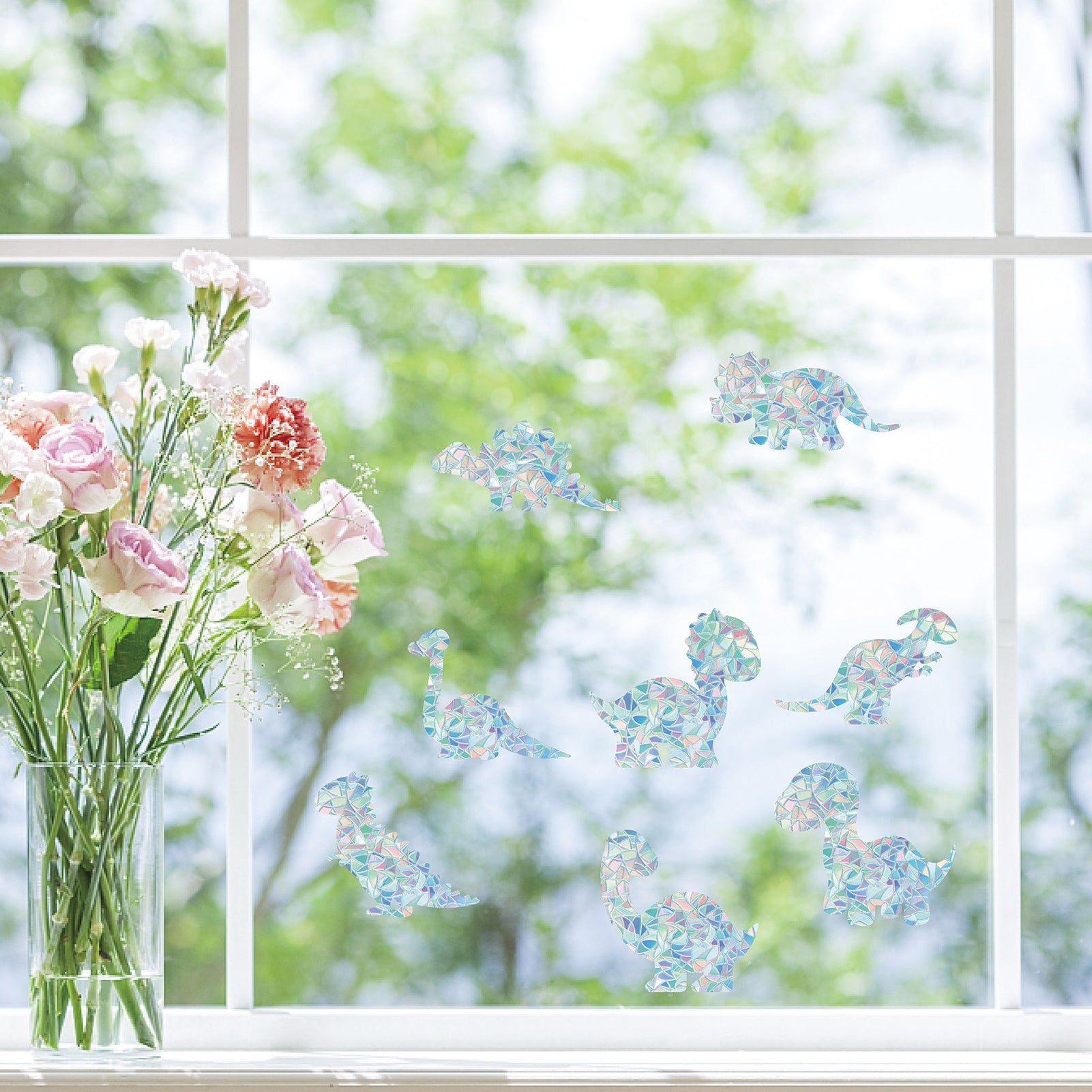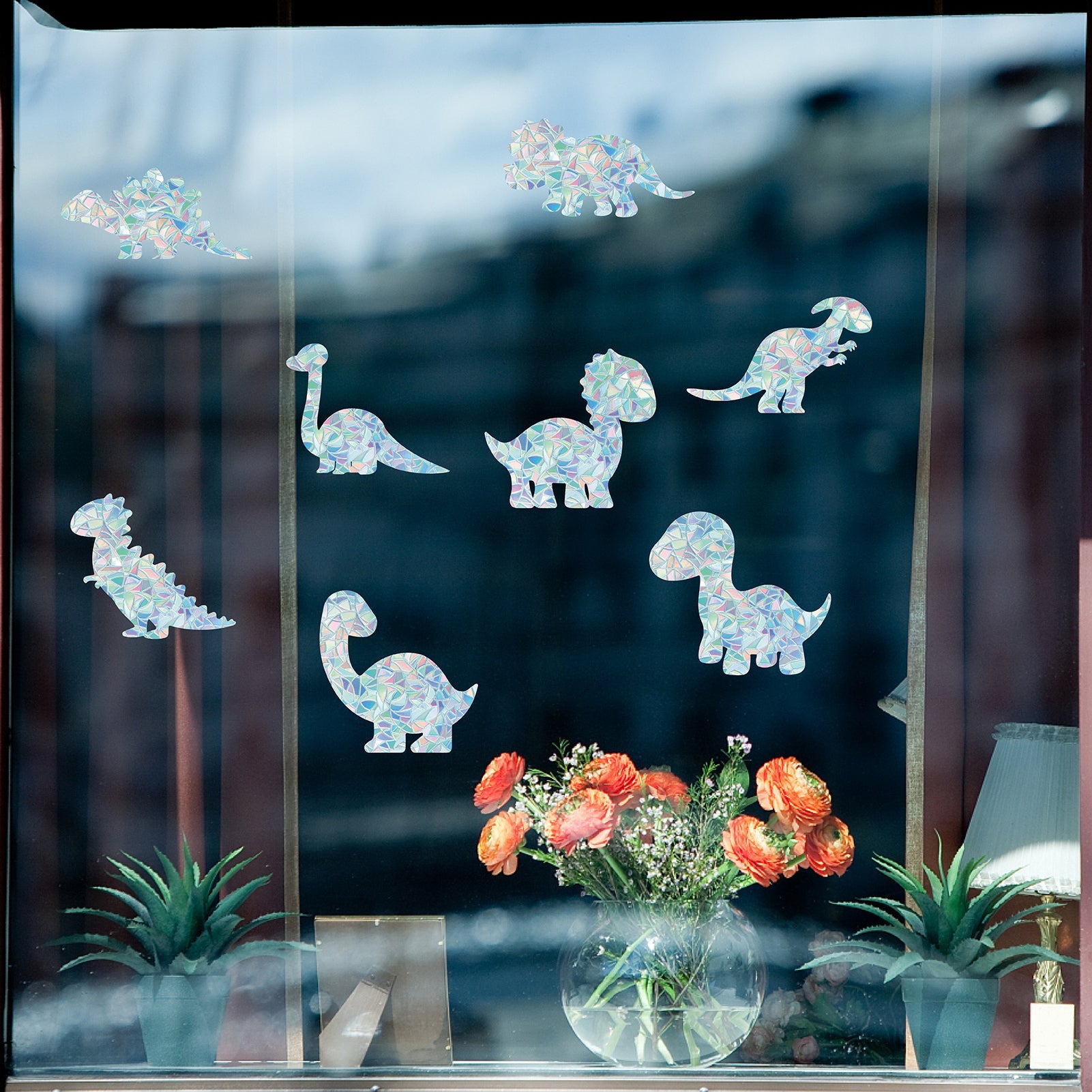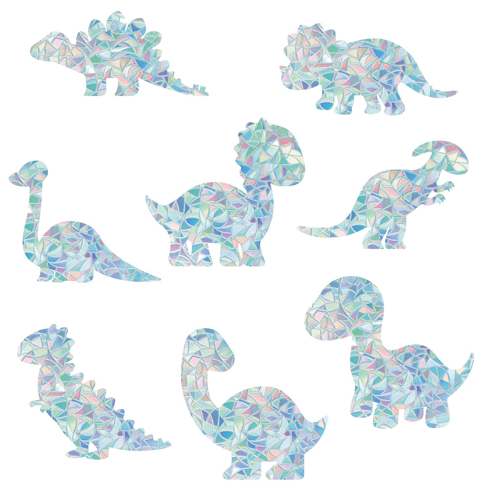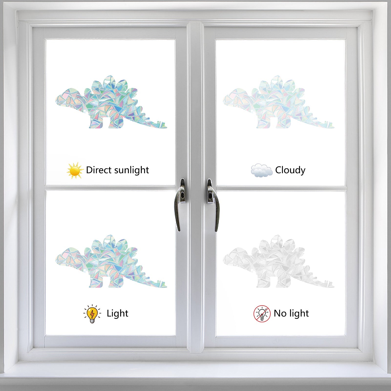 Craspire 16 Sheets 4 Styles Waterproof PVC Colored Laser Stained Window Film Static Stickers, Electrostatic Window Stickers, Dinosaur Pattern