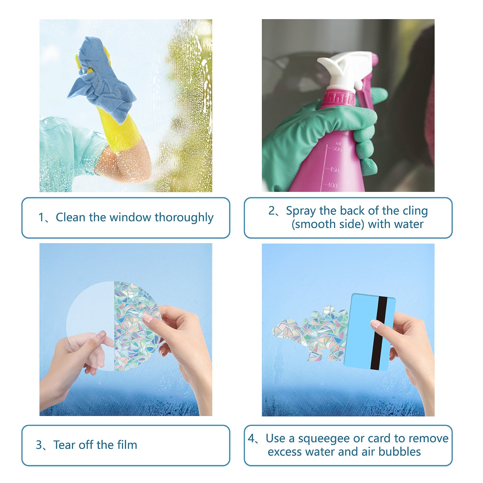 Craspire 16 Sheets 4 Styles Waterproof PVC Colored Laser Stained Window Film Static Stickers, Electrostatic Window Stickers, Dinosaur Pattern, 330x830mm