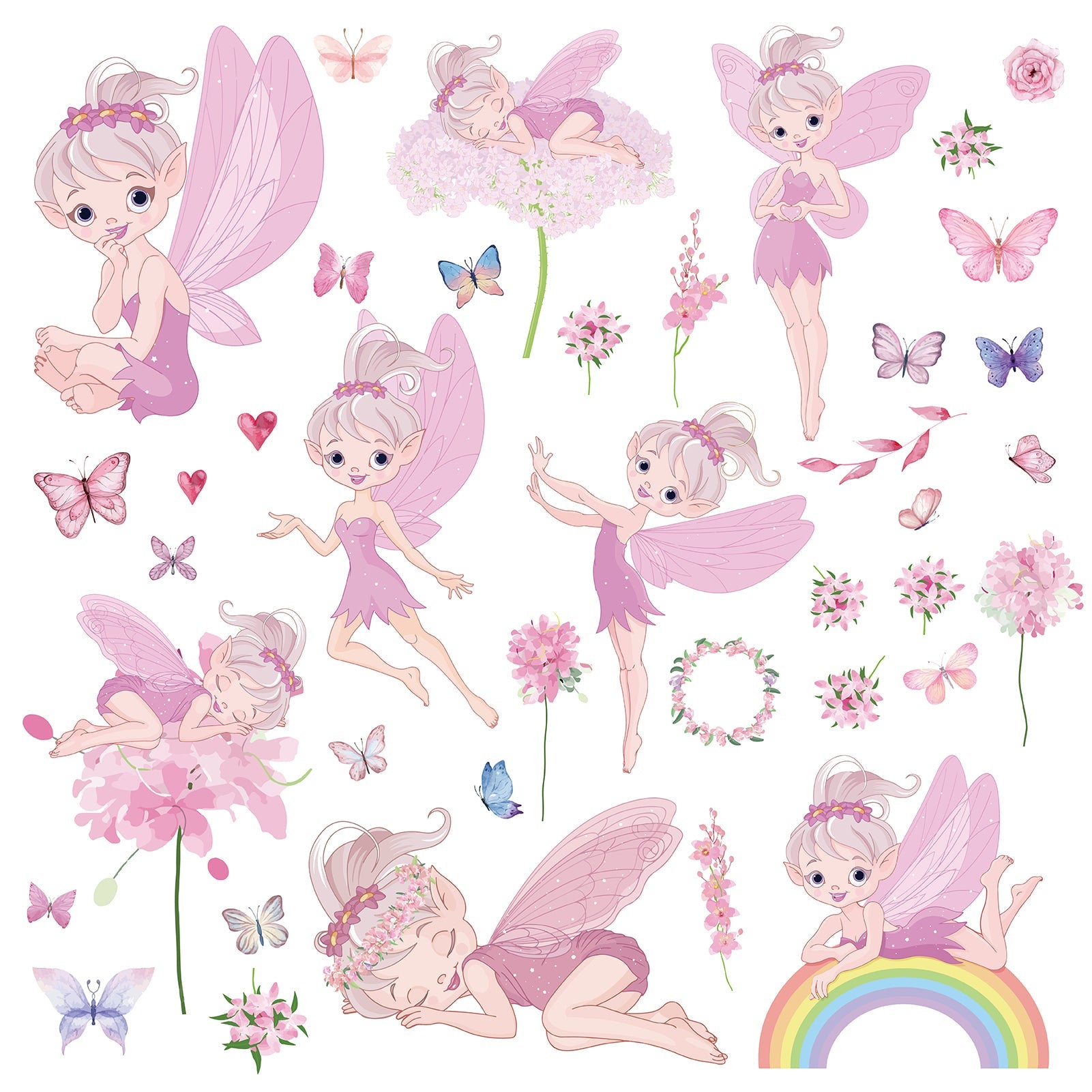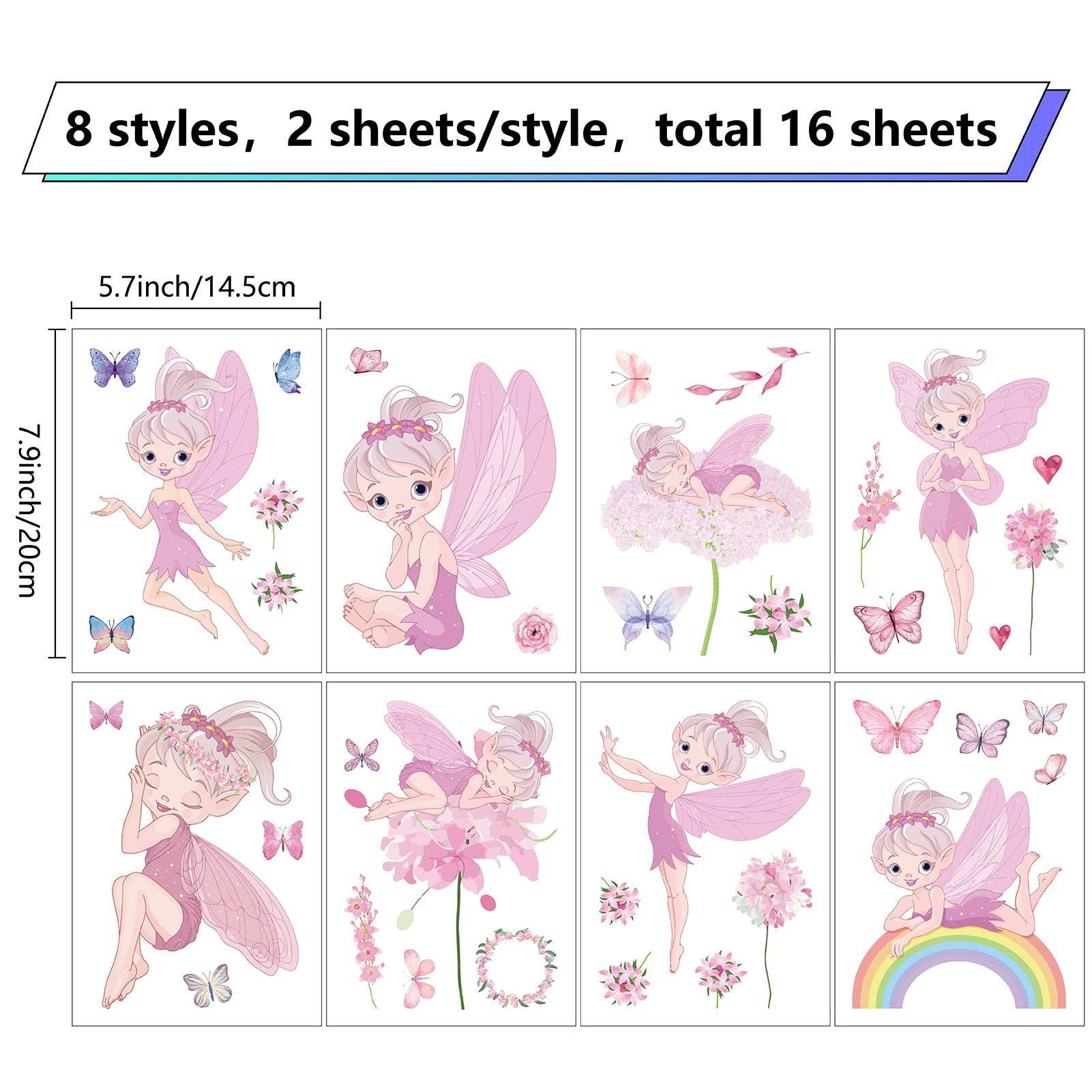 Craspire 16 Sheets 8 Styles Waterproof PVC Wall Stickers, Rectangle Shape, for Window or Stairway Home Decoration, Angel & Fairy Pattern
