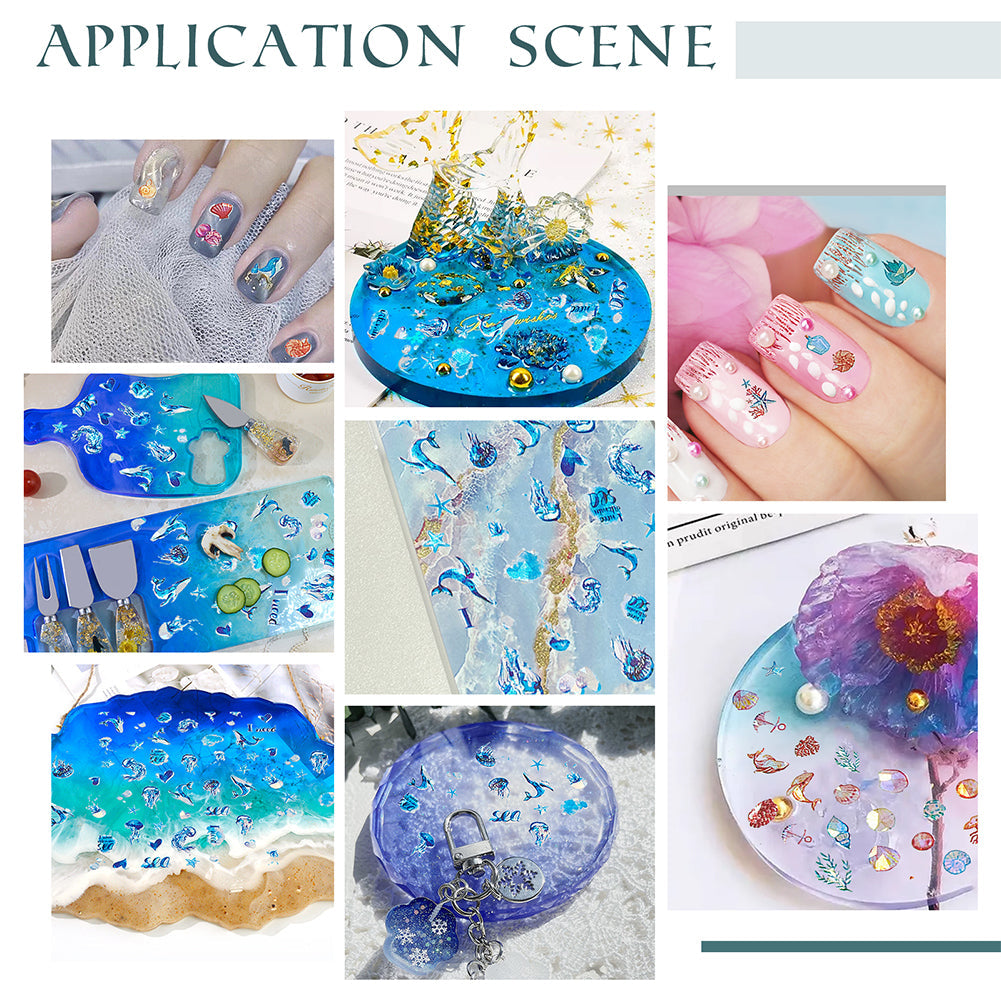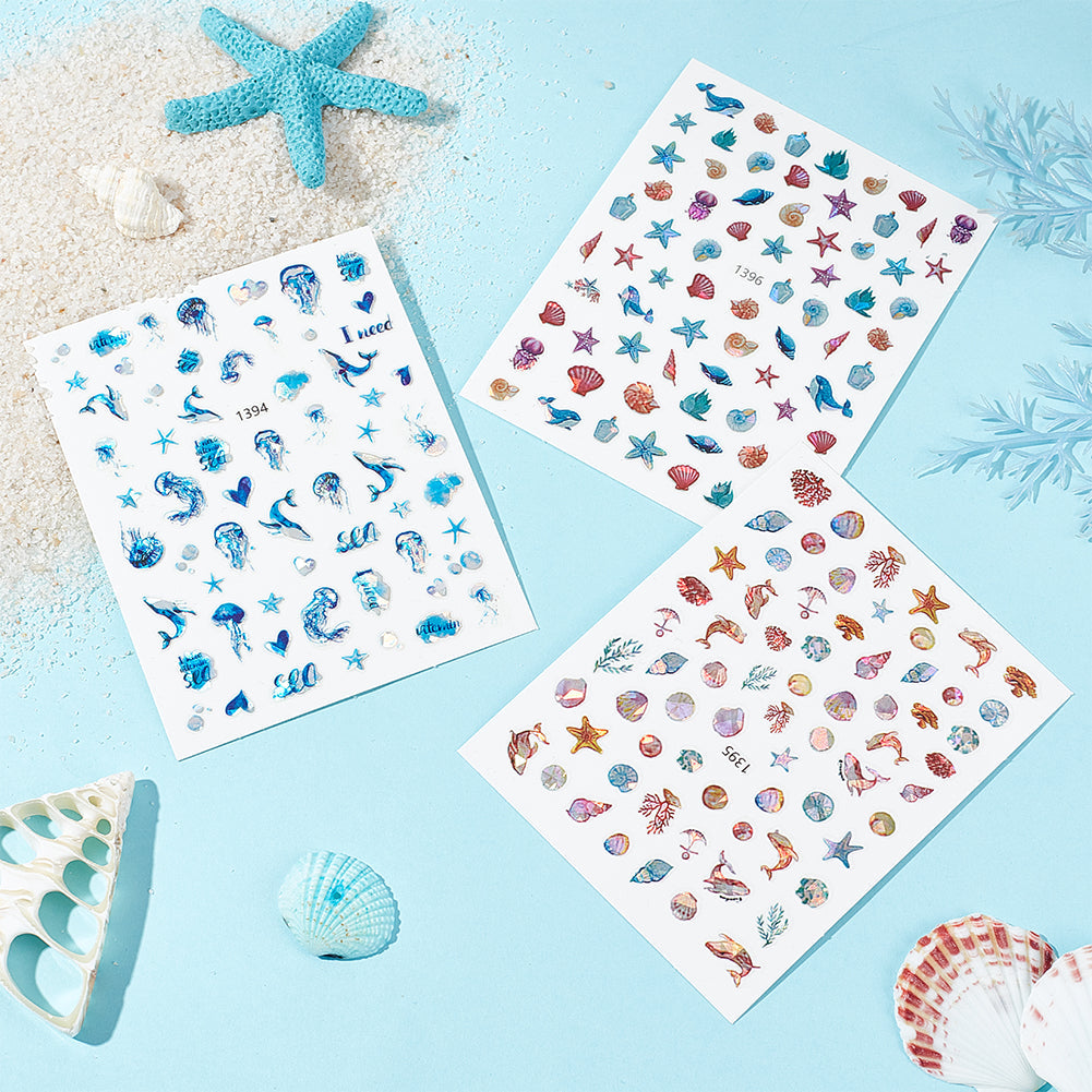 Ocean Theme PET Nail Art Stickers: 133x83x0.5mm, stickers: 3.5~15x3.5~12mm, 4sheets;