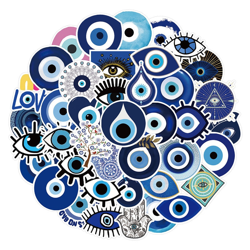 Craspire Waterproof PVC Plastic Sticker Labels, Self-adhesion, for Card-Making, Scrapbooking, Diary, Planner, Cup, Mobile Phone Shell, Notebooks, Evil Eye Pattern