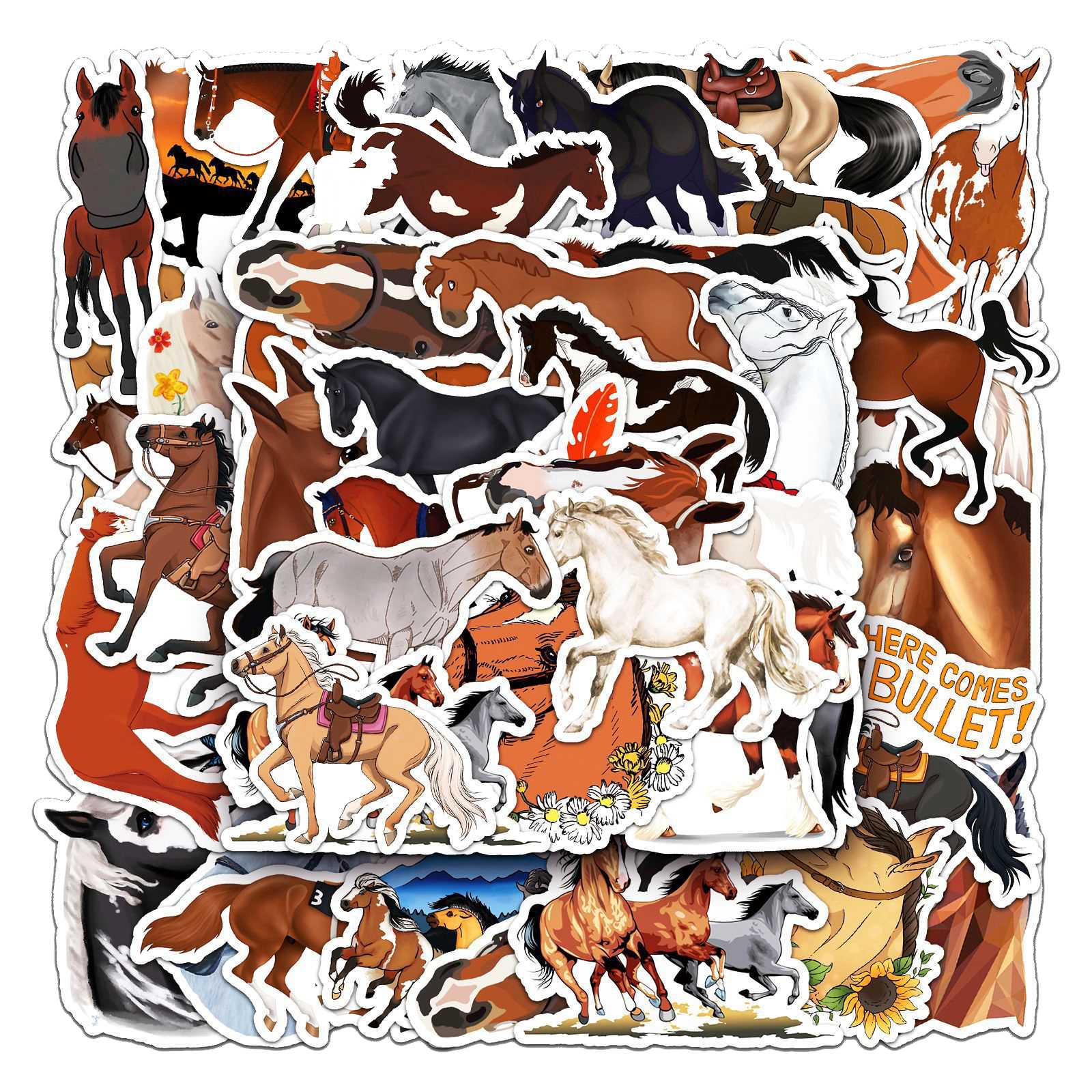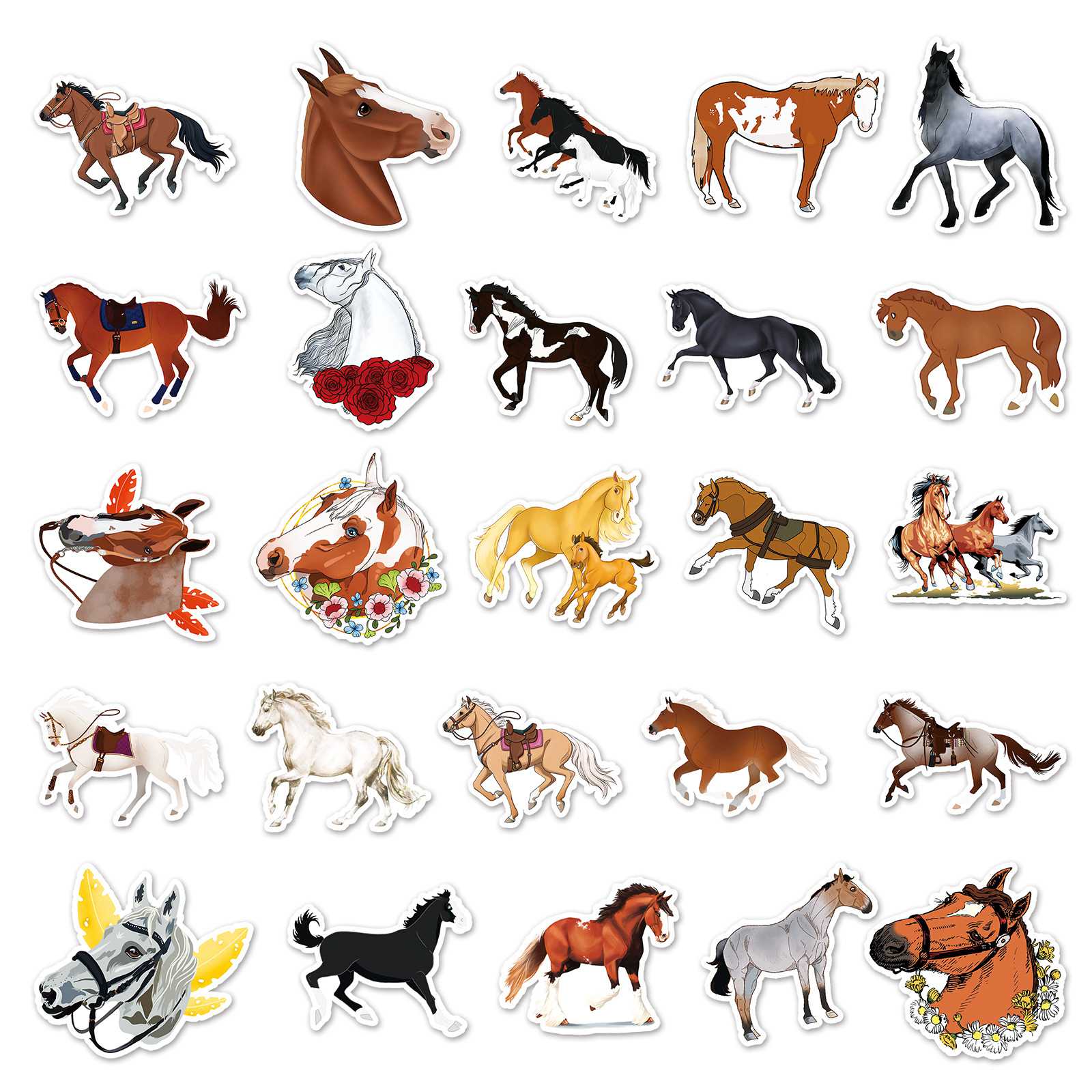 Craspire Waterproof PVC Adhesive Stickers, for Suitcase, Skateboard, Refrigerator, Helmet, Mobile Phone Shell, Horse Pattern, 55~85mm, 50pcs/bag