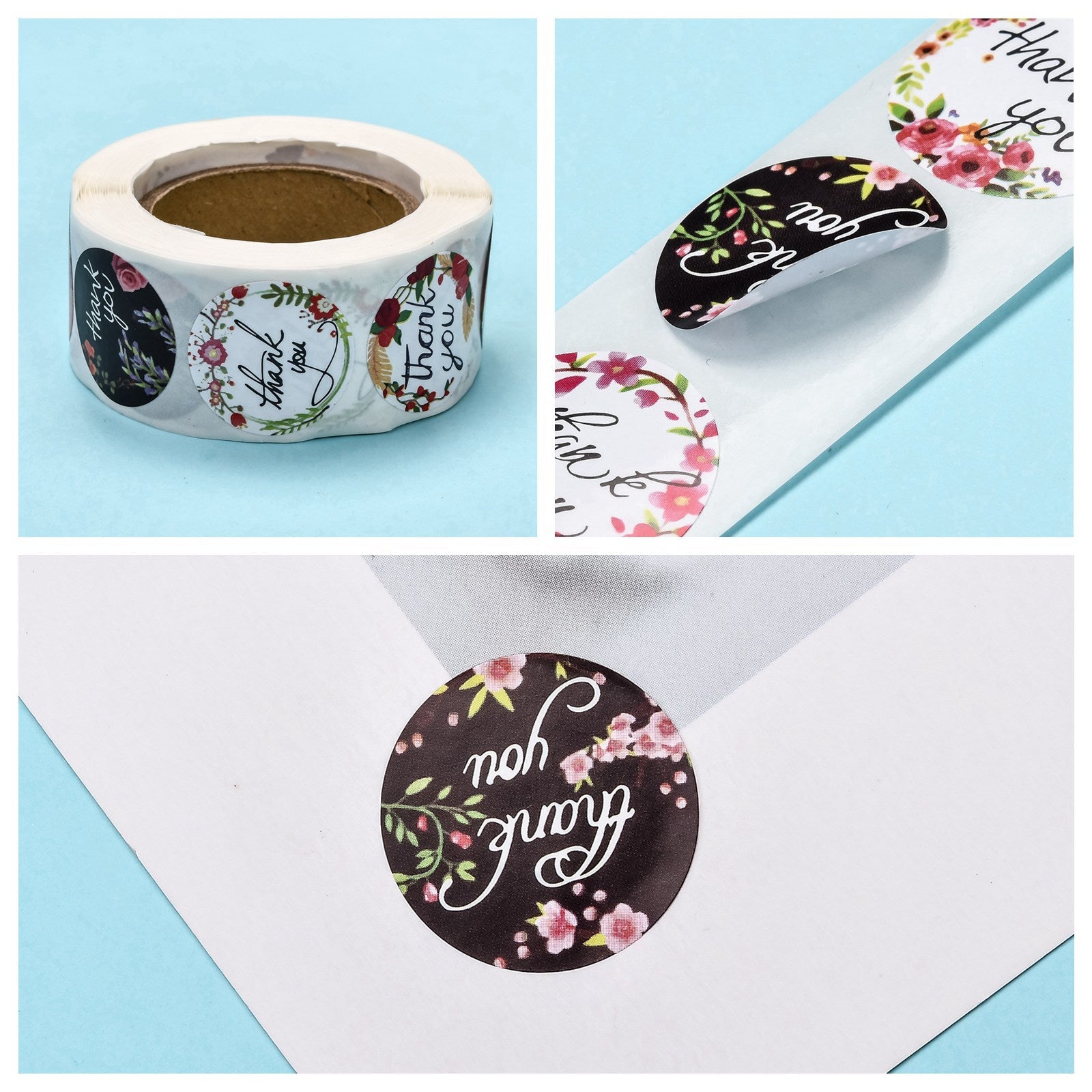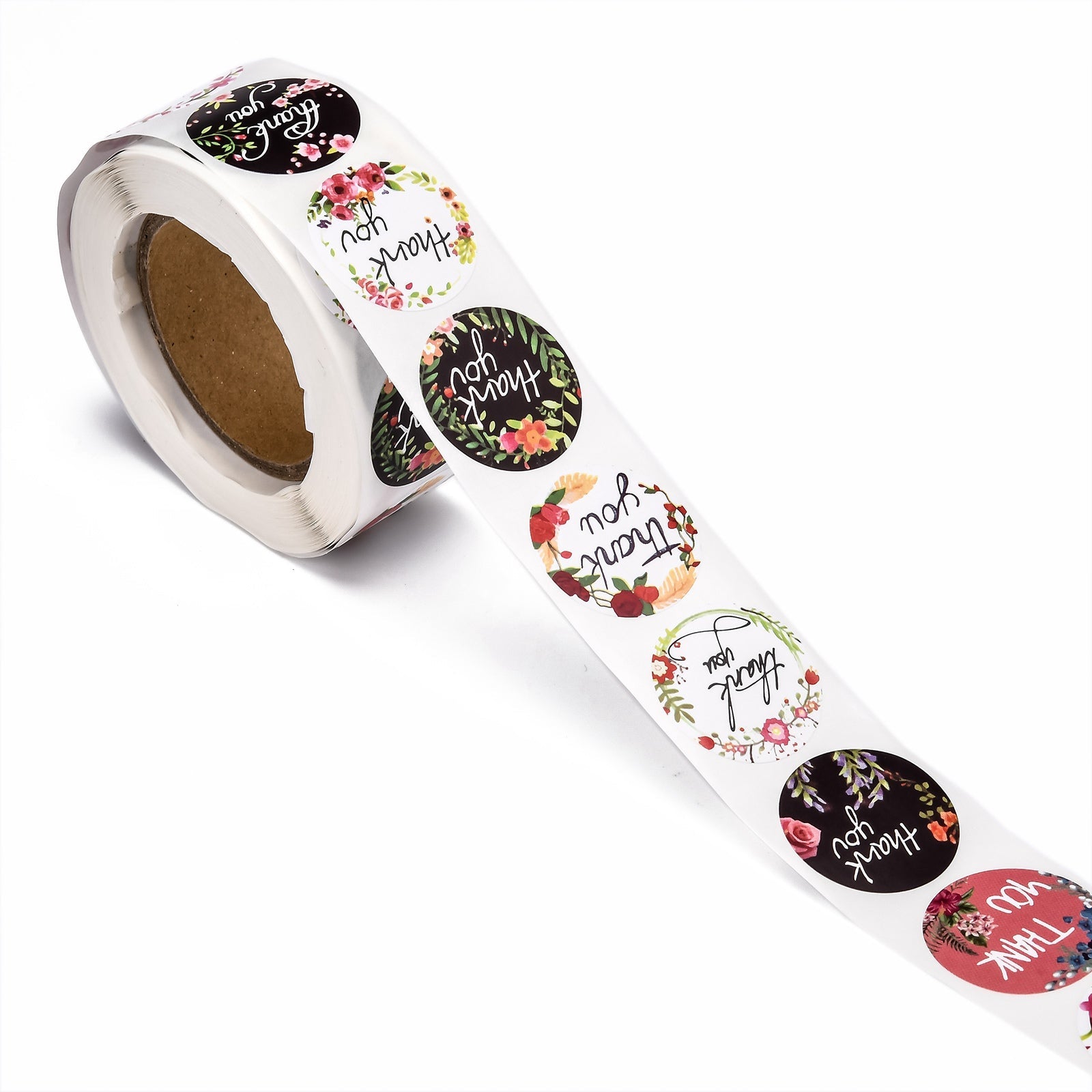 Craspire 1 Inch Thank You Theme Self-Adhesive Paper Stickers, Gift Tag, for Party, Decorative Presents, Round, Colorful