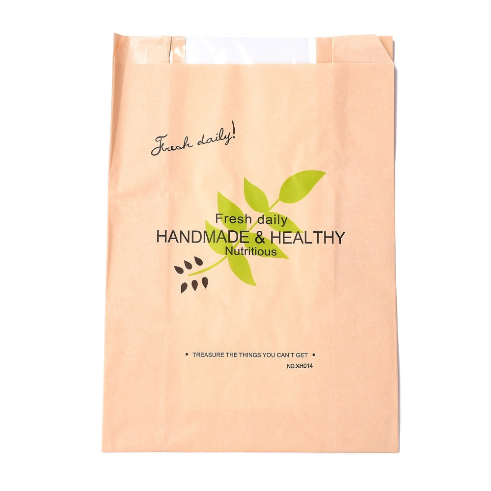 Rectangle with Leaf Pattern Paper Baking Bags, No Handle & Oil-proof Bags, with Sticker, for Gift & Food Wrapping, PeachPuff