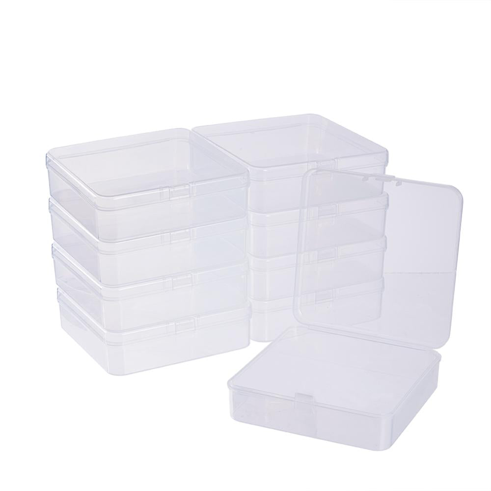1 Box 10 Pack 3.74x3.74x1.18 Square Clear Plastic Bead Storage Containers Box Case with lid for Crafts, Beads, Coins, Jewelry and Watch Findings