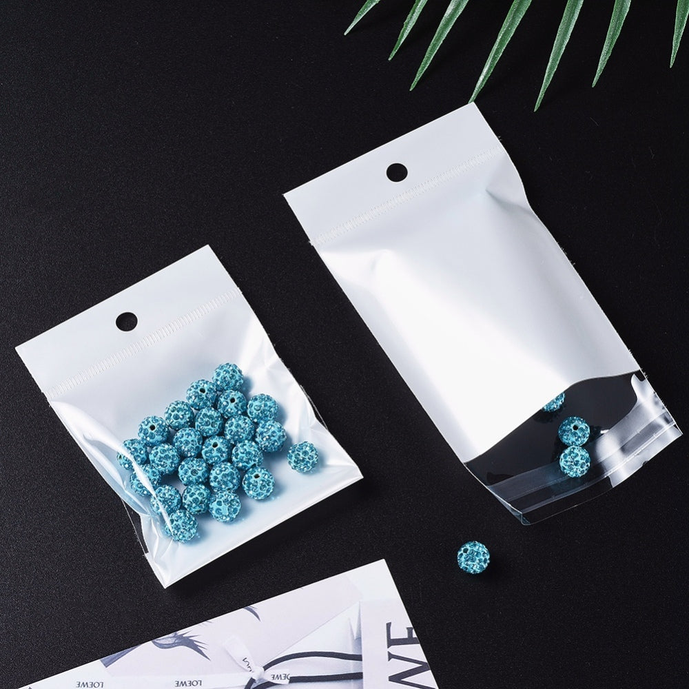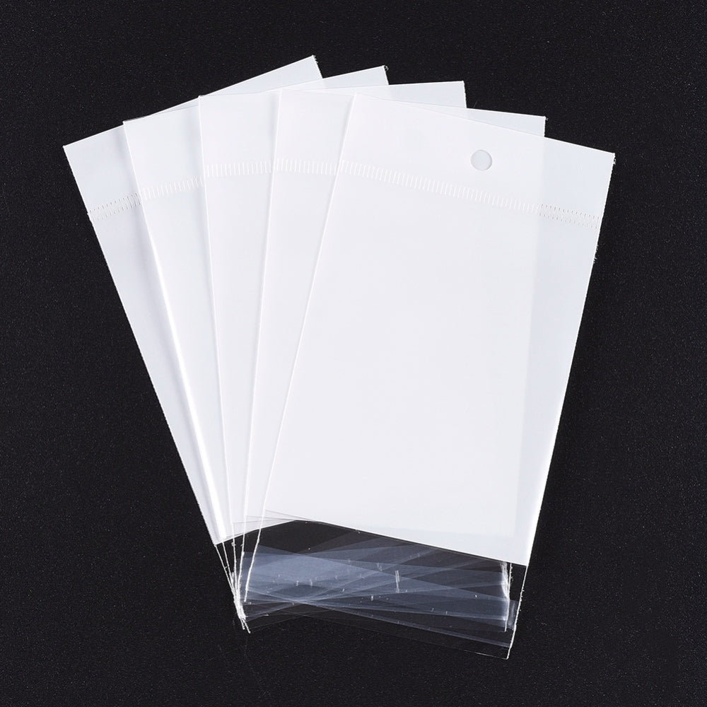1000 pc Pearl Film OPP Cellophane Bags, Self-Adhesive Sealing, with Hang Hole, Rectangle, White, 14x6cm, Unilateral Thickness: 0.035mm, Inner Measure: 9x6cm